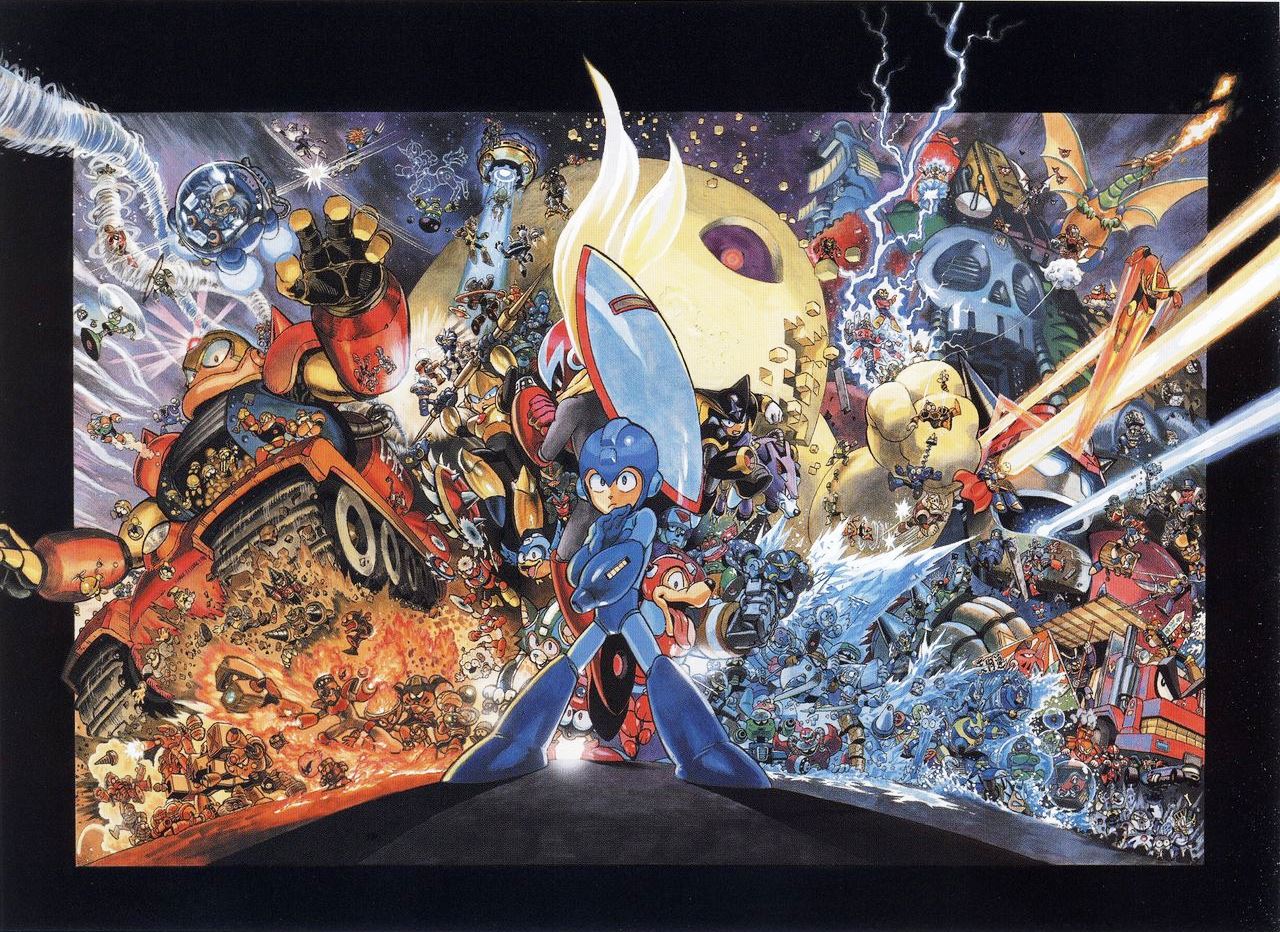 >>729271638My favorite detail about this is that Murata doesn't give the two Robot Masters he personally designed (Dust & Crystal) special treatment in the composition. He just loves Mega Man as a whole and wanted to draw it all (including the Stardroids, holy based).