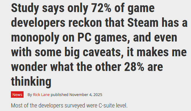 >Most of the developers surveyed were C-suite level.Reminder that Anti-Steam cultists are everywhere. They even side with C-suite executives.