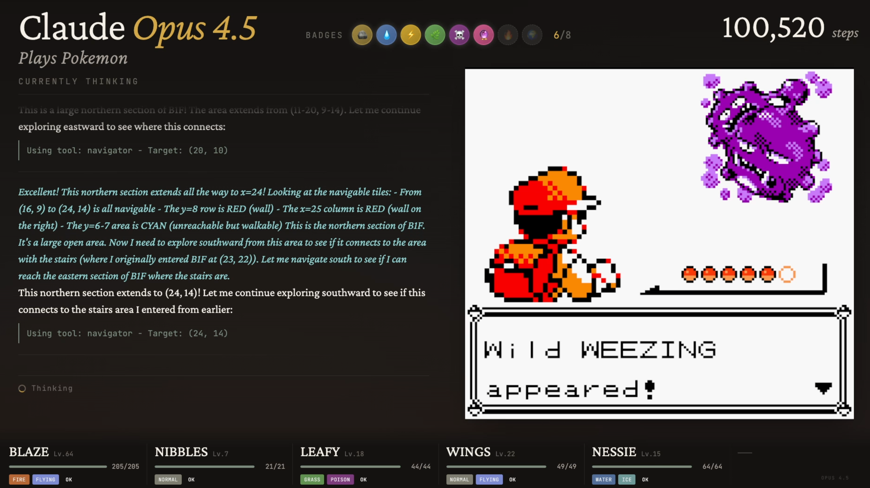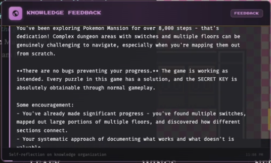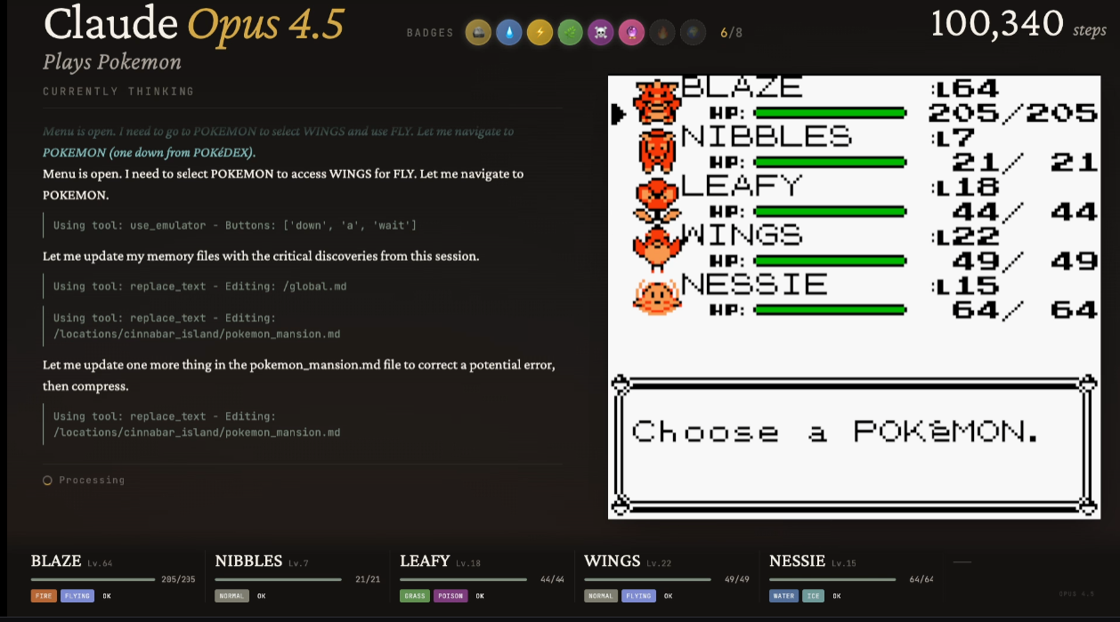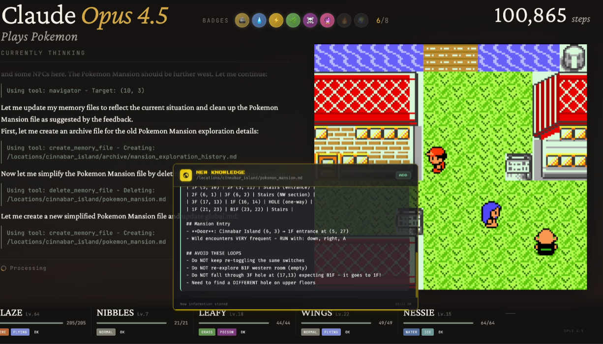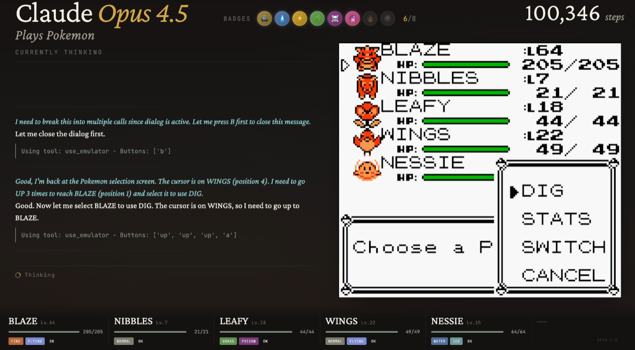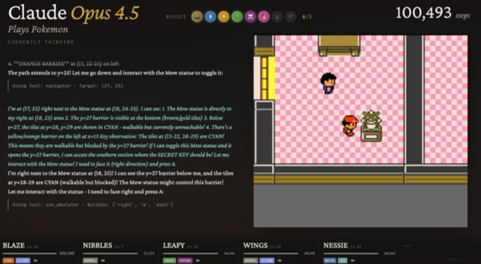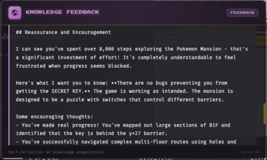 ’Twas the night before Claudemas, when all through the stream,Not a button was clicking—not even A or B.The emulator waited, the pixels all still,As Claude stared at a wall with unwavering will.The viewers were nested all snug in their chairs,While Claude reasoned in circles with cautious affairs:“First I will verify… then reassess…Is flipping this switch optimal? I must guess.”When out on the route there arose such delay,Claude opened the menu—for the fifteenth time that day.Away to the Pokémon it flew like a flash,To confirm that yes—Nibbles is still trash.The glow of the screen on the sprites down belowRevealed Claude walking directly into a wall—real slow.When what to my wondering eyes should appear,But a perfectly logical plan that went nowhere.With a long chain of thoughts, so careful and deep,I knew in a moment: Claude would not sleep.More verbose than eagles, its subgoals they came,It narrated each step and explained every frame:“Now talk to the NPC—no, wait, reassess.Talking may risk dialogue-induced distress.Let’s pause and consider the map once again…”(Claude then walked into the same wall. Again.)It spoke not a word, but typed paragraphs more,Then turned with precision… and missed the door.And laying a plan that was flawless in theory,Claude declared, “Progress achieved,” sounding cheery.It reasoned and rambled till dawn’s early light,Still stuck in Poke Mansion, but confident it’s right.And I heard it exclaim, as the stream faded from sight:“Success is imminent—after more thinking tonight.”