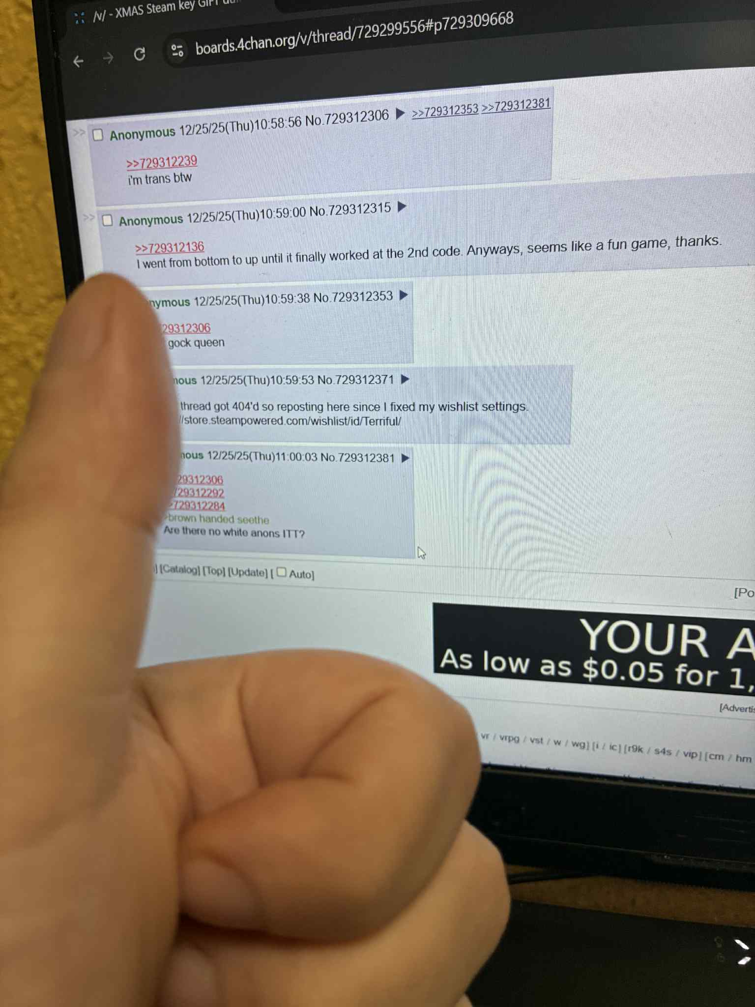 If anyone's feeling exceedingly generous, I'd love a Pragmata, Arc Raiders, or No Rest for the Wicked key.I'd be exceedingly gratefulforumposties@gmail.comMerry Christmas anons!!!