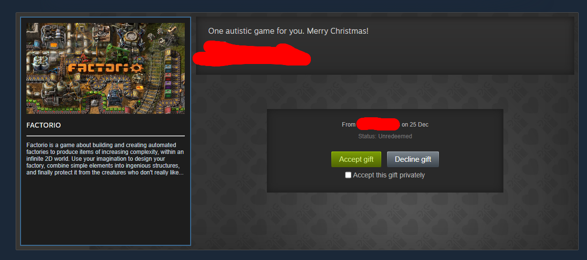 Merry Christmas everyone! https://steamcommunity.com/id/Sirius776/