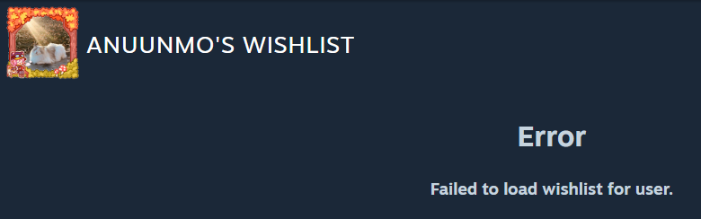 You know what, why don't we just save this thread until like, tomorrow, when Steam might ACTUALLY WORK?For any Father Christmases out there, I think I want the crab game the most. https://store.steampowered.com/wishlist/profiles/76561198125302604/