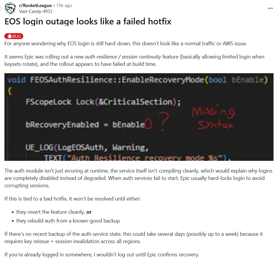 >>729304187Epic went down because a pajeet forgot a semicolon.