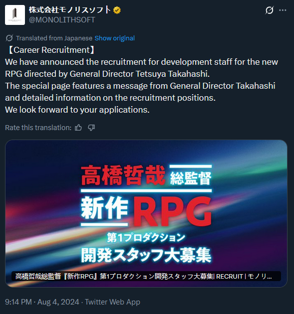 >>729306731Interesting. Doesn't mean it's next Xenoblade, right?