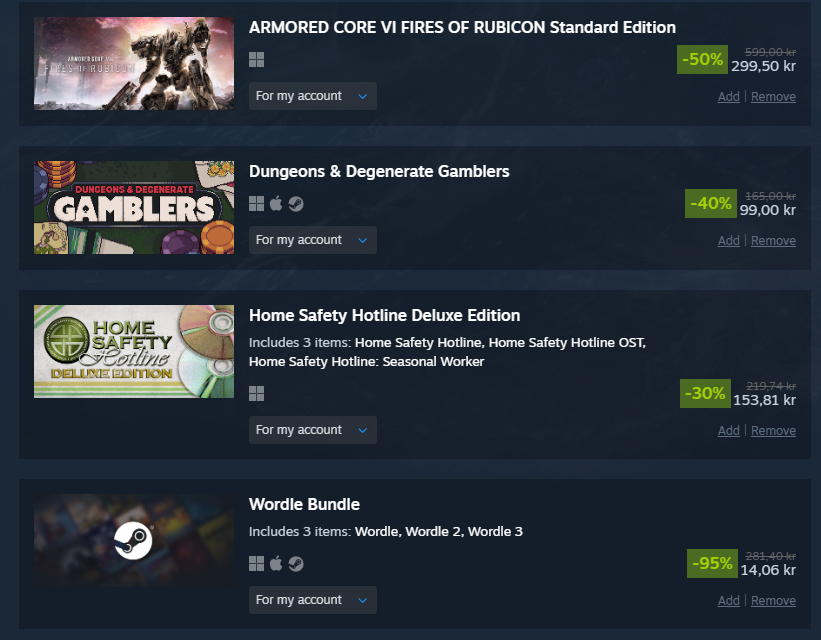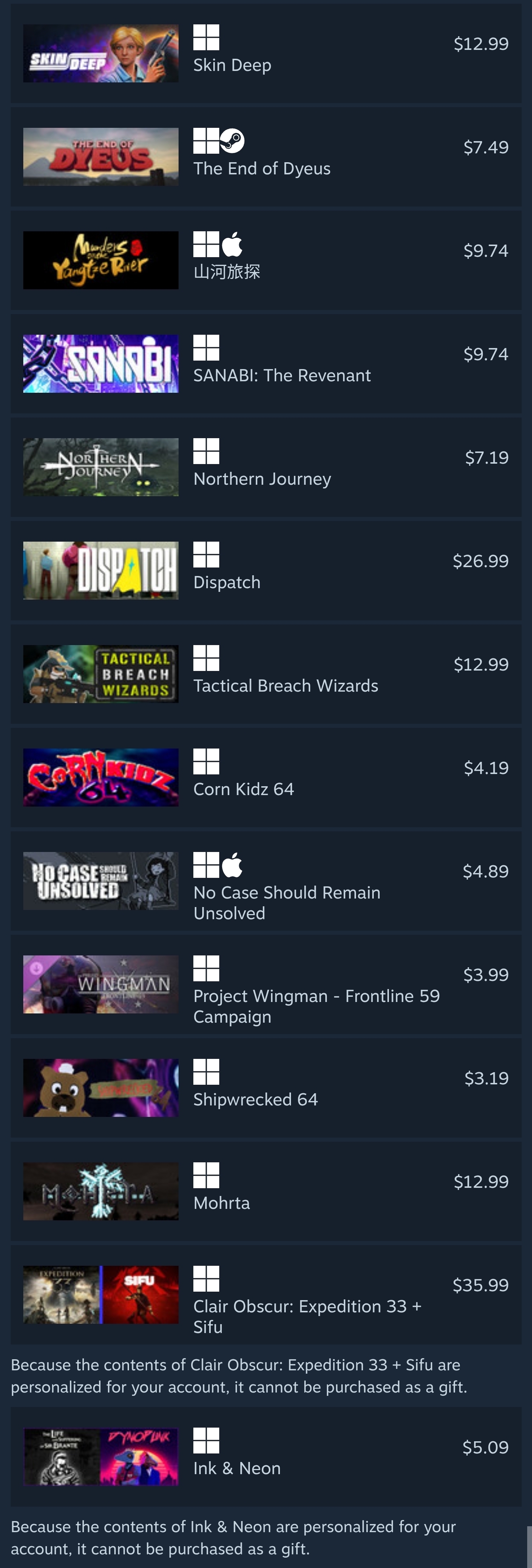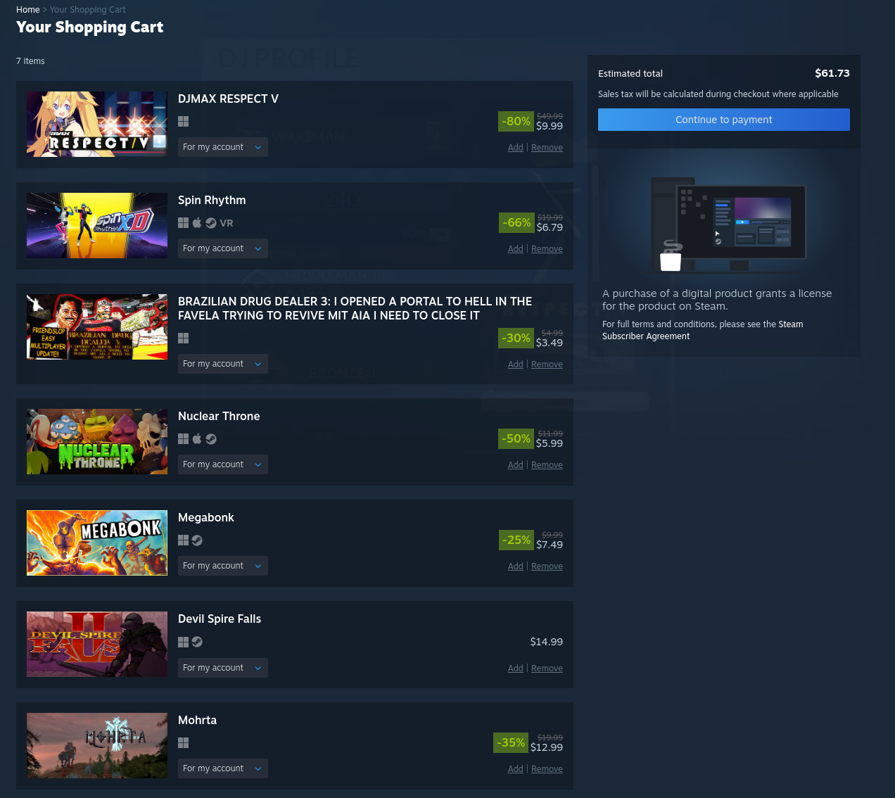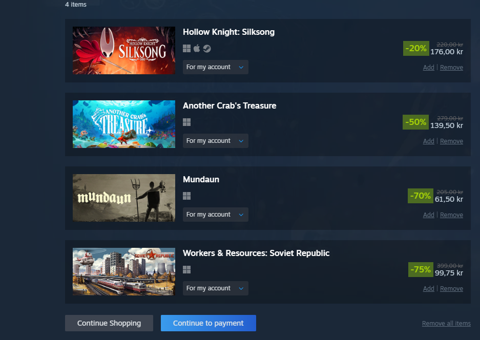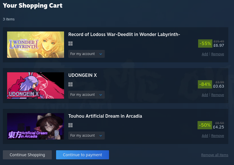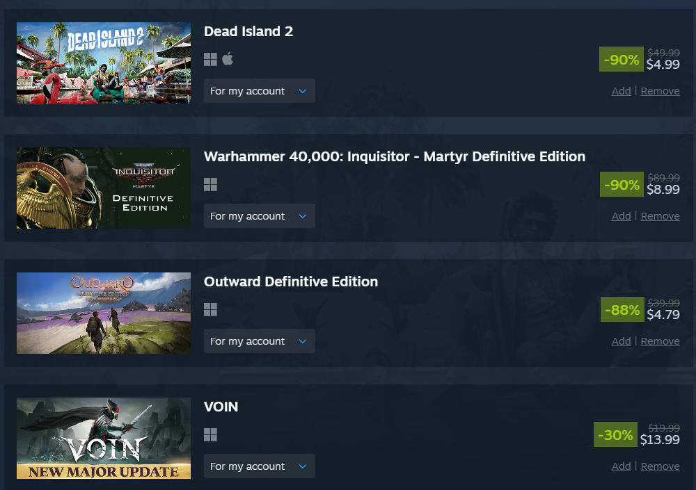 took it easy this sale and even resisted the urge to overspend on coomer games like alwaysthe middle games are getting delisted so that's why i got them