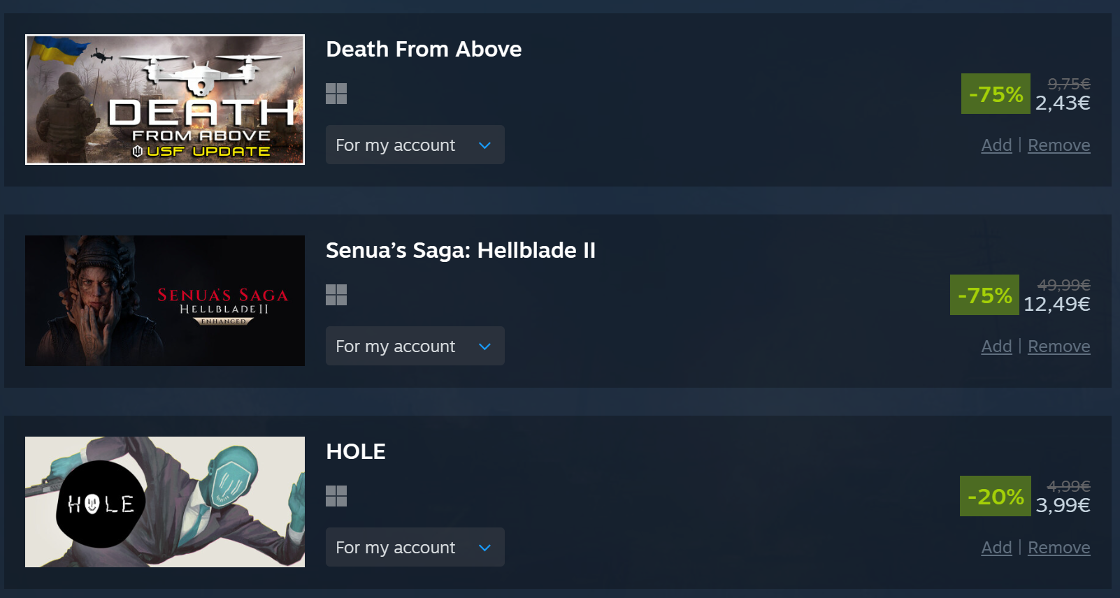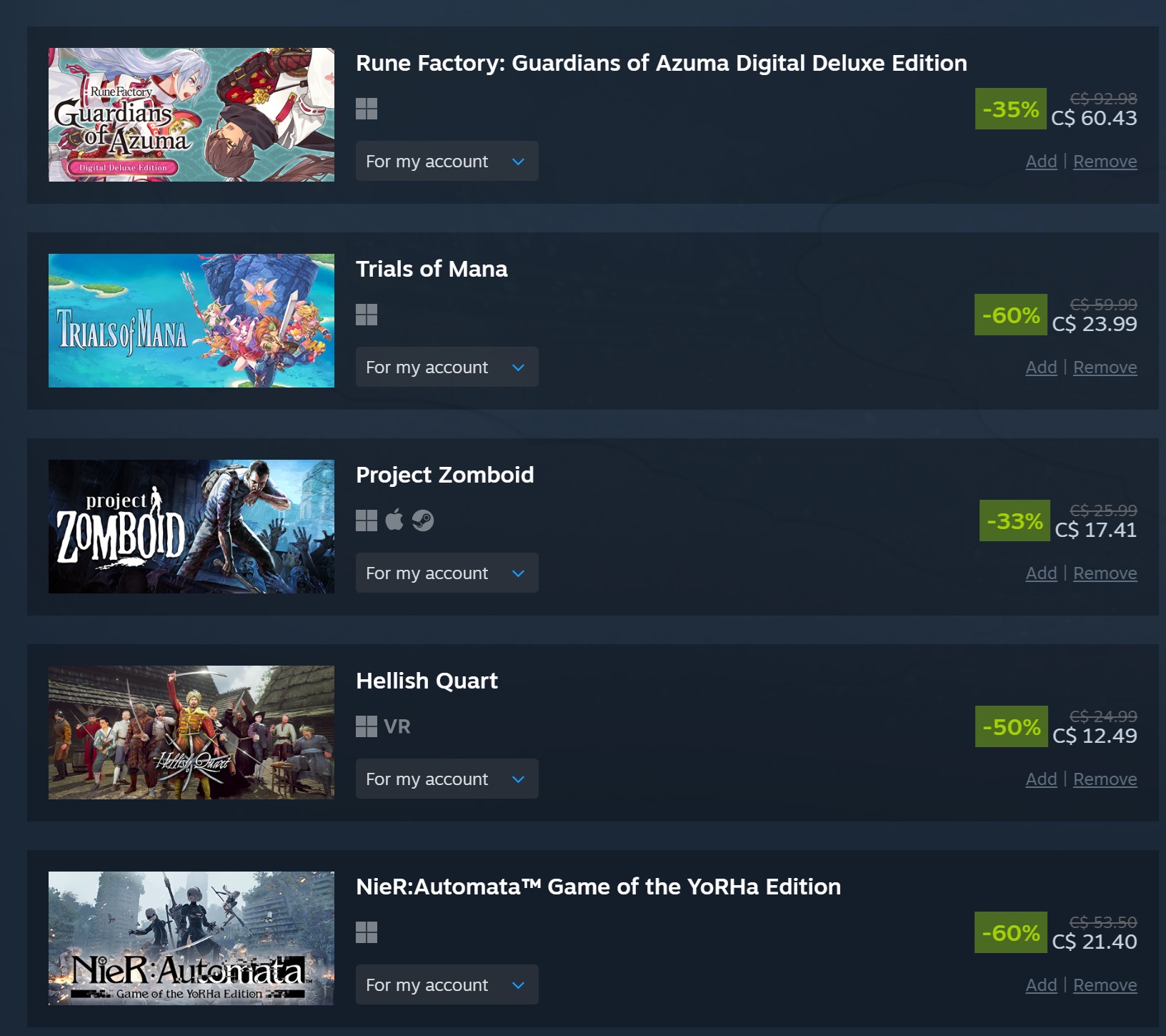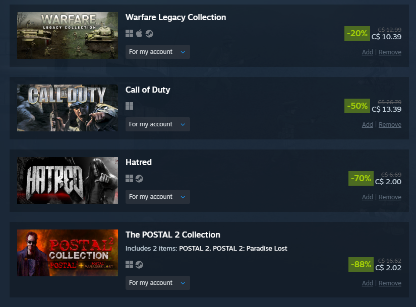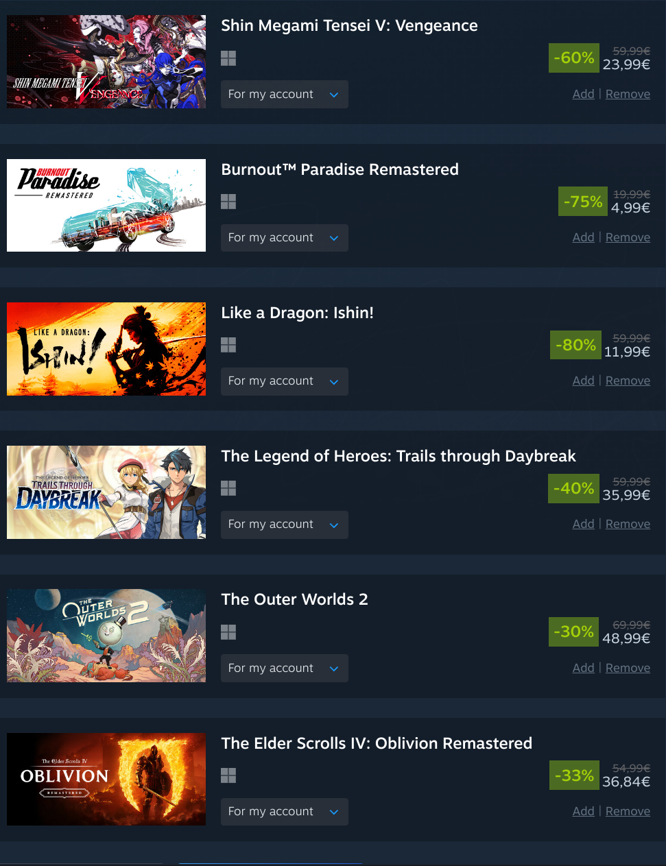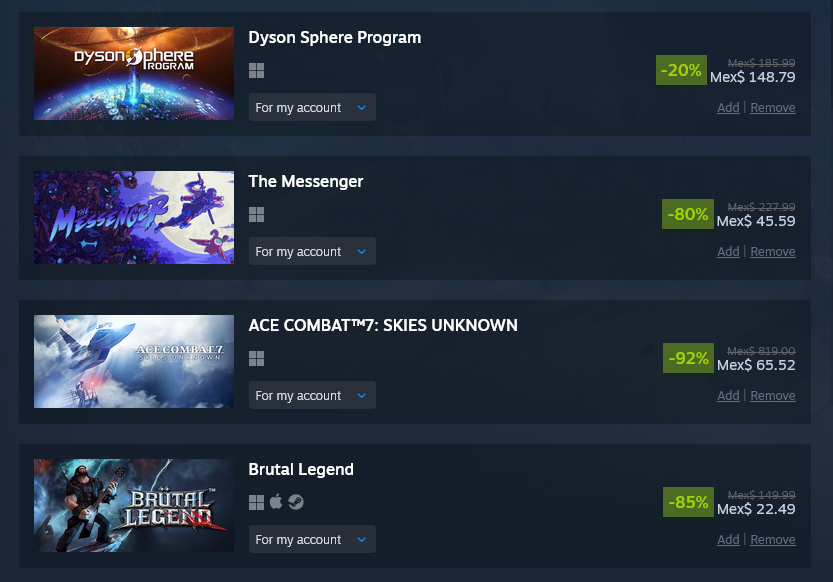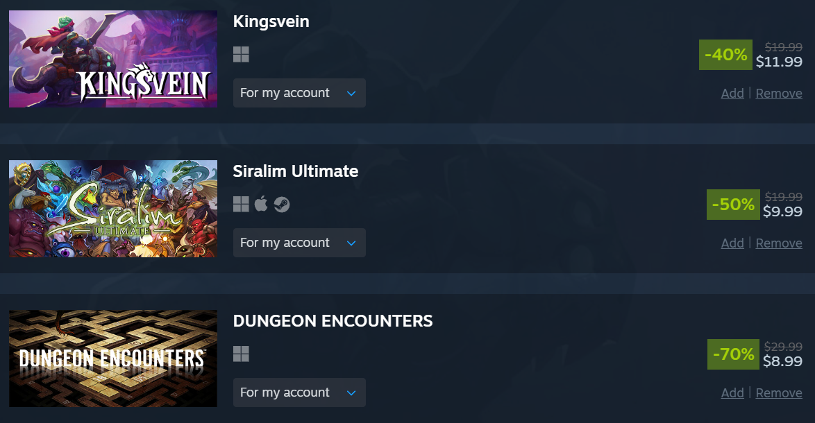 took it easy this sale and even resisted the urge to overspend on coomer games like alwaysthe middle games are getting delisted so that's why i got them