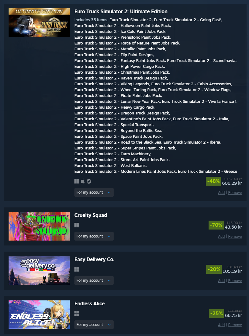>>729365579Jeg tror det er lurt, men hvis du finner en kosmetisk greie som du syns er kul så kan du jo kjøpe den. Viking eller Halloween eller noe. Going back to english so we don't get banned. The newest expansions aren't on sale, but I think getting the special transports and a few new countires is value