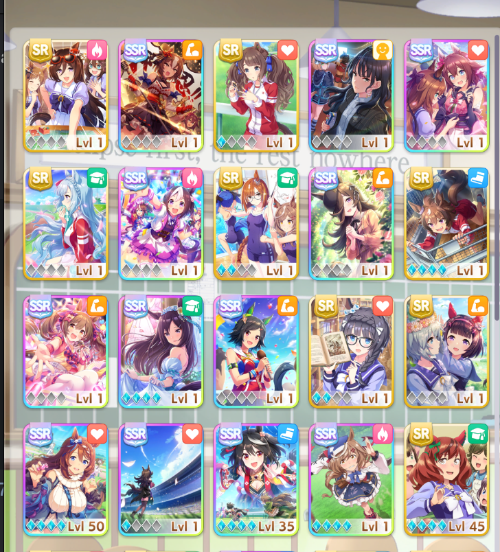 >>729350931>>729350959Okay I'm dumb apparently I DID get 1 kitasan but didn't notice it, so now she's LB4 after the pity and the gem thingiehere's my cards sorted by date obtained, I already uncapped what I could