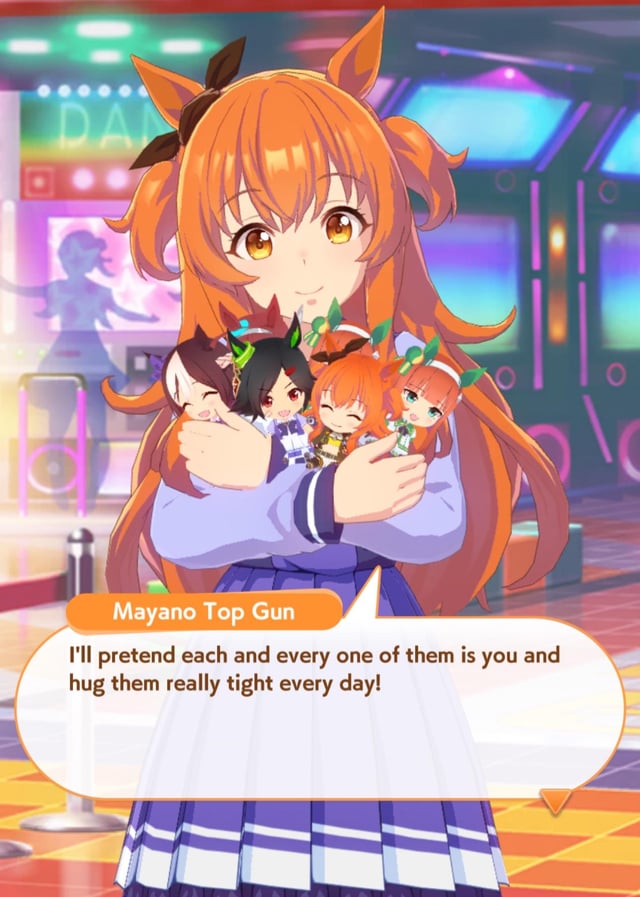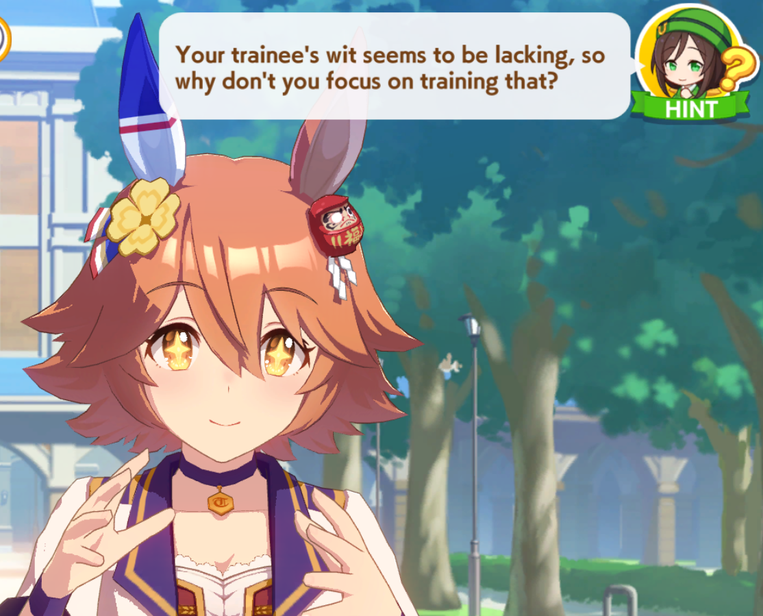 >>729357835There are many times that Fuku is pretty attach you>that soda event >that valentine event>that bobbing apple quote in halloween>that holiday event>that hand holding good luck event>that hotspring event where you found out she was working on impressing you with all the jokes and entertainment>that ending where she call you her good luck charm and goes out to eat ramenBut its seem mostly on the validation of your approval over your lovedovely part. Trainer -san sometime tease her here and there, like that part where she was suicidal. Regardless in an ironic fashion, her career is also the Trainer trying to tell Fuku to believe in herself and not just think that all her victory was in luck or from her god worship. Early Fuku is totally on board with Shiraoki and do whatever Shiraoki tell her to do. Post-Shiraoki (where she think her gods abandon her) is where what I mention happens.