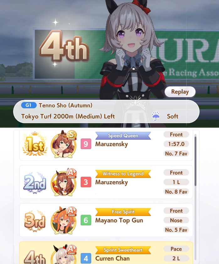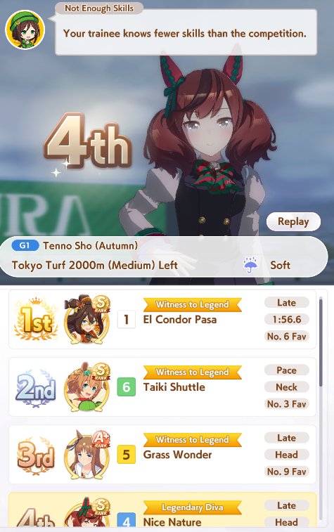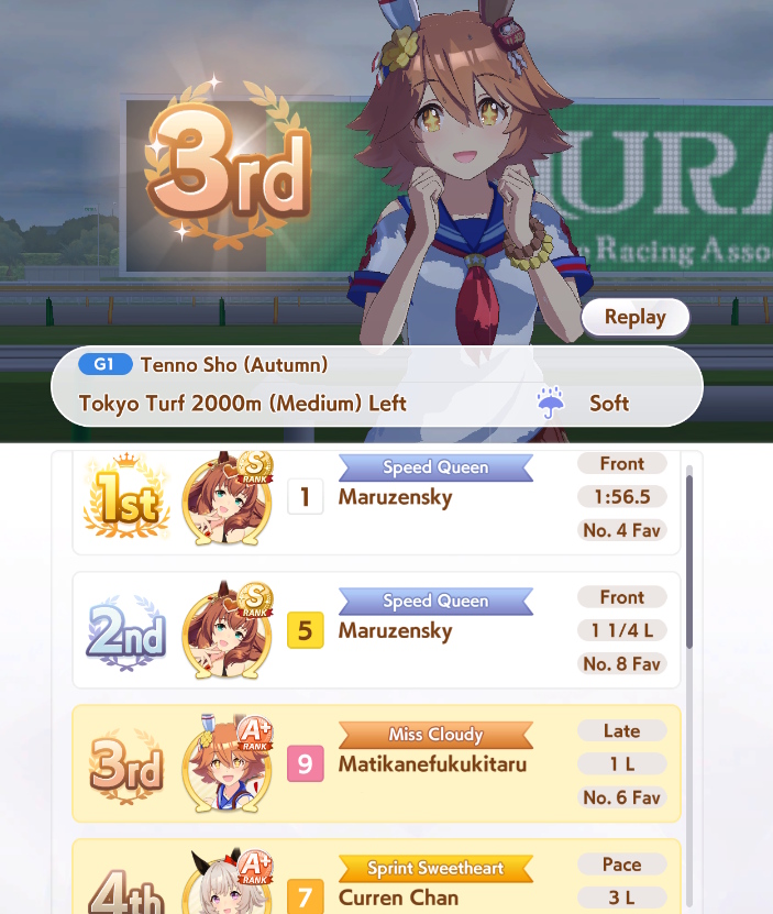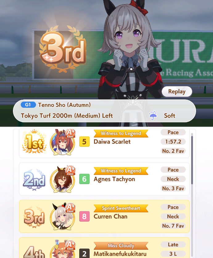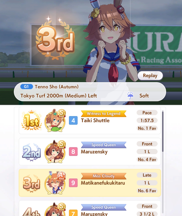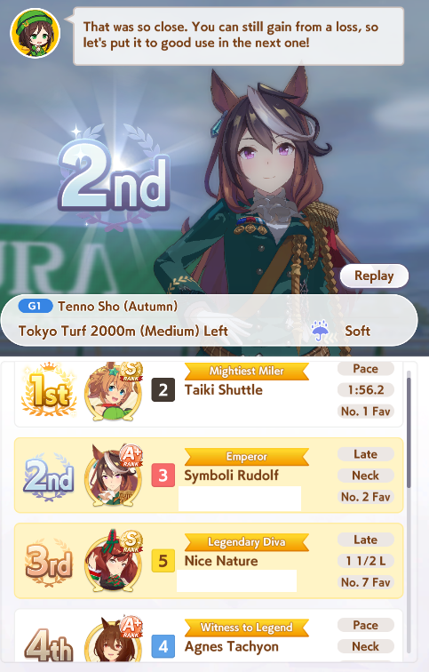 >>729350072I had her on my list early because she's cute and I like the Mejiros, turns out I like late gambling and she's good for that.