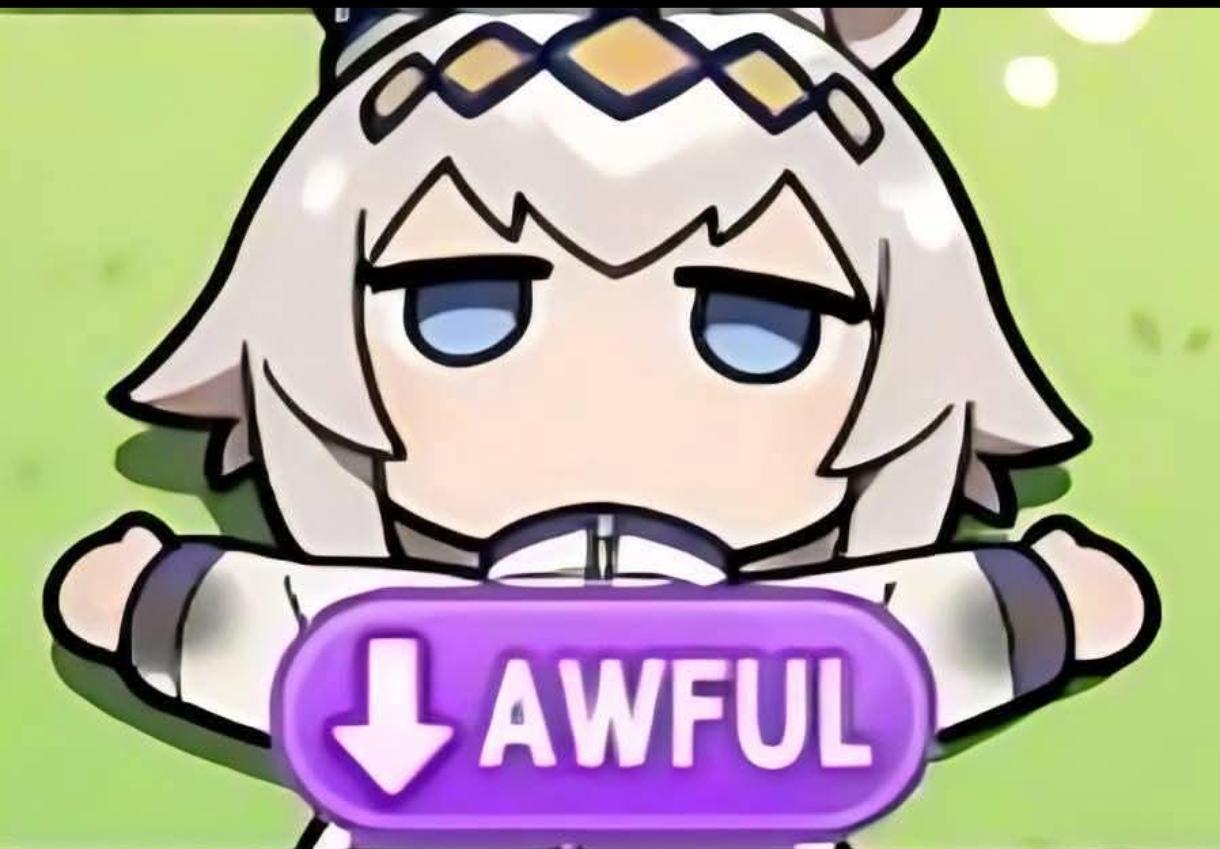 >>729357156She's the caring granny who likes to listen to your woes and take care of you. Her dad was rookie boxer of they year but fucking blew it and got into a slump, but with the help of his eventual wife he bounced back and eventually opened up a gym to support other people who may be struggling in life, and Acute looks up to that and wants to be that kind of support for (You), fully entrusing herself to your care and even going up against Falco to prove a point that (You) ARE a good trainer (Acute T has a similar situation that parallels to her dad.)In her bond 7 the two of you go to a shrine and write wishes on a lantern which end up both being to stay together forever. Her Valentine's event is giving her a bouquet of flowers and her freaking the fuck out and showing all her friends. She also does le funny art meme cause the real horse painted a picture once. Her roommate is Tanscend who is the modern and high tech uma which is a fun contrast to the old granny that she is. She also has bushy eyebrows which is giga cute. I fucking love this granny.