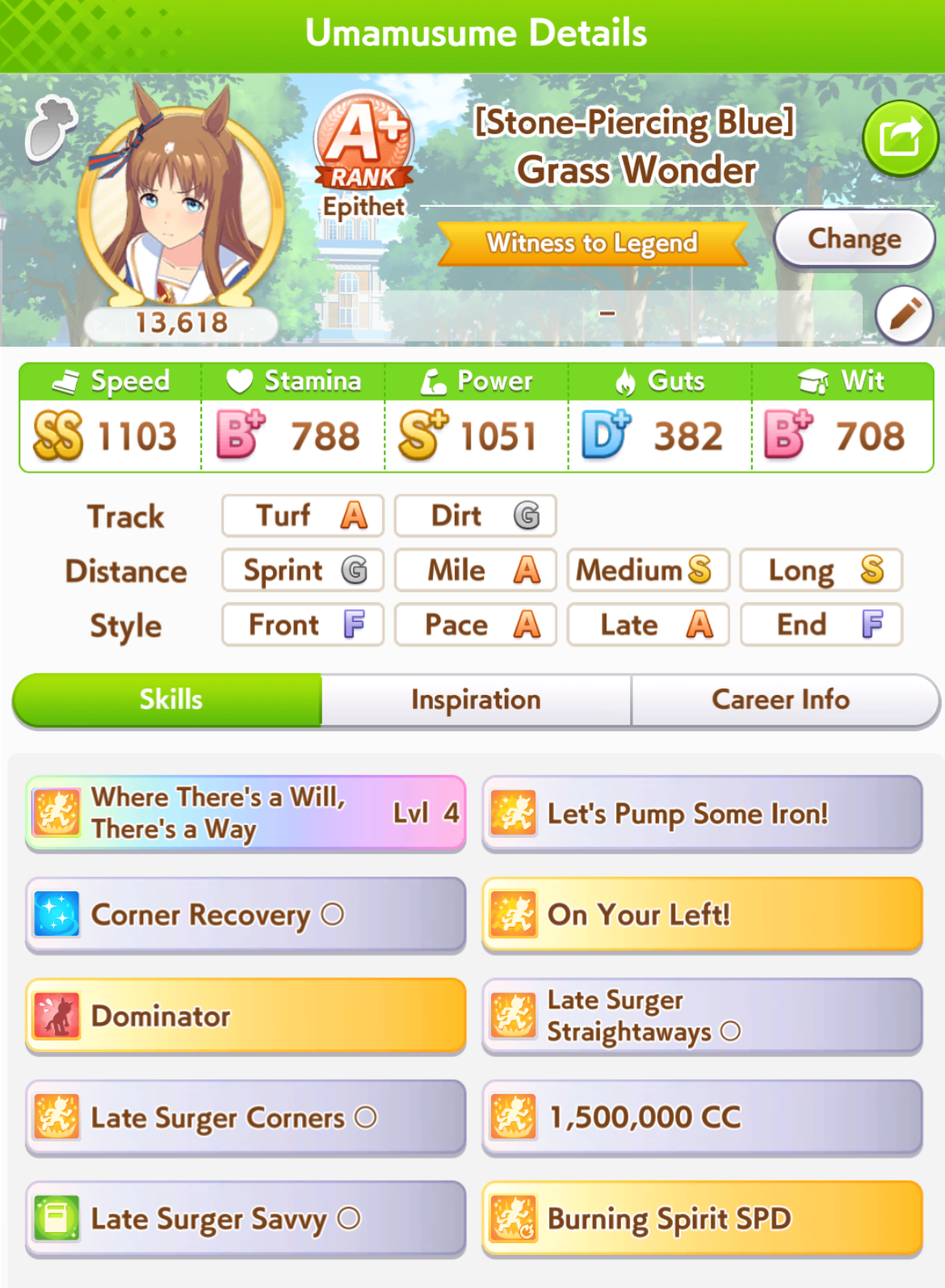 >>729358095This is a good uma just needs slightly more guts and speed, oh and dont get burning spirit. Get no stopping me.