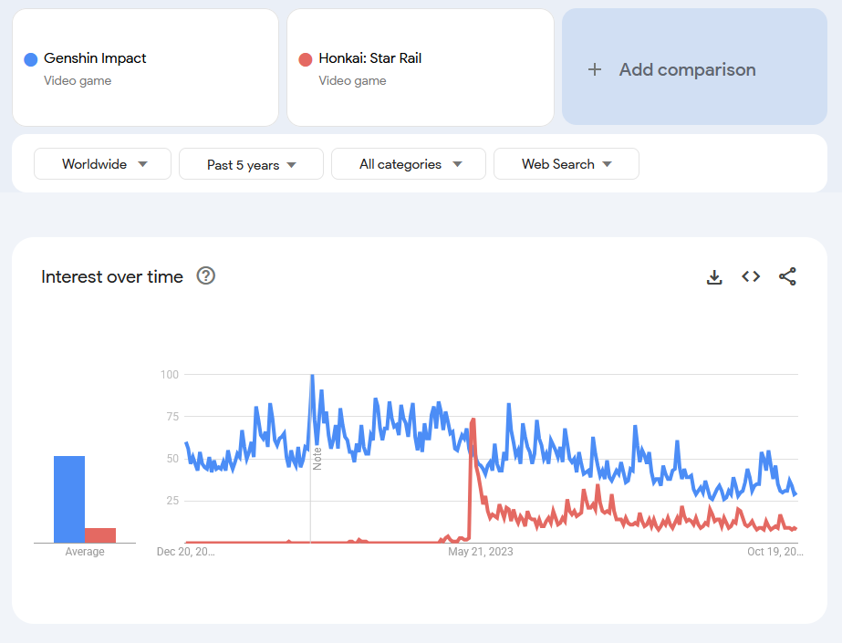 >>729385576It never was. Genshin at its peak was (and still mostly is) huge among normalfag audiences, while Star Rail found a much smaller niche.