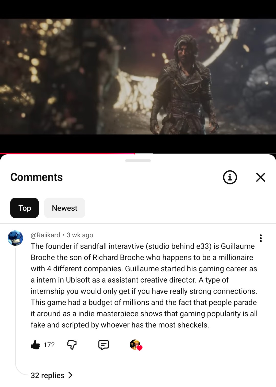 >>729375657Am I missing something, or what does this have to do with E33? Are you mad that it isn't in his Top 2 games? Why would you be?