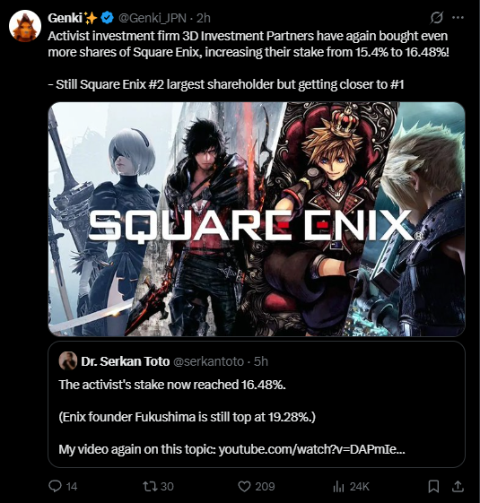 >>729400410100% this. He is salty as fuck.IIRC he didn't even meet with the E33 team when they visited the SE head office. He's a literal crybaby.