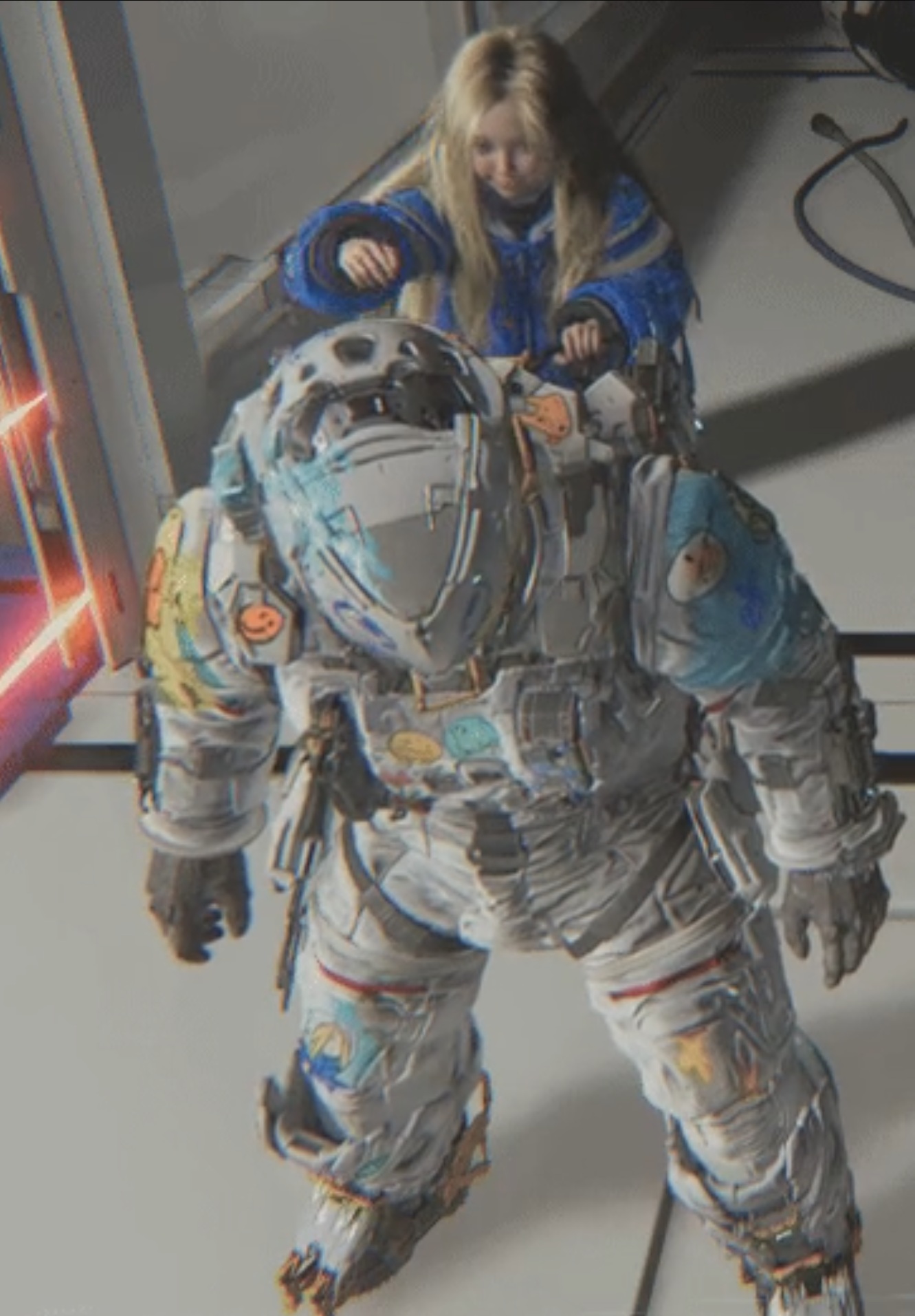 Have we found all of the easter eggs in the demo?For example, if you go afk, she taps on the back of your helmet.