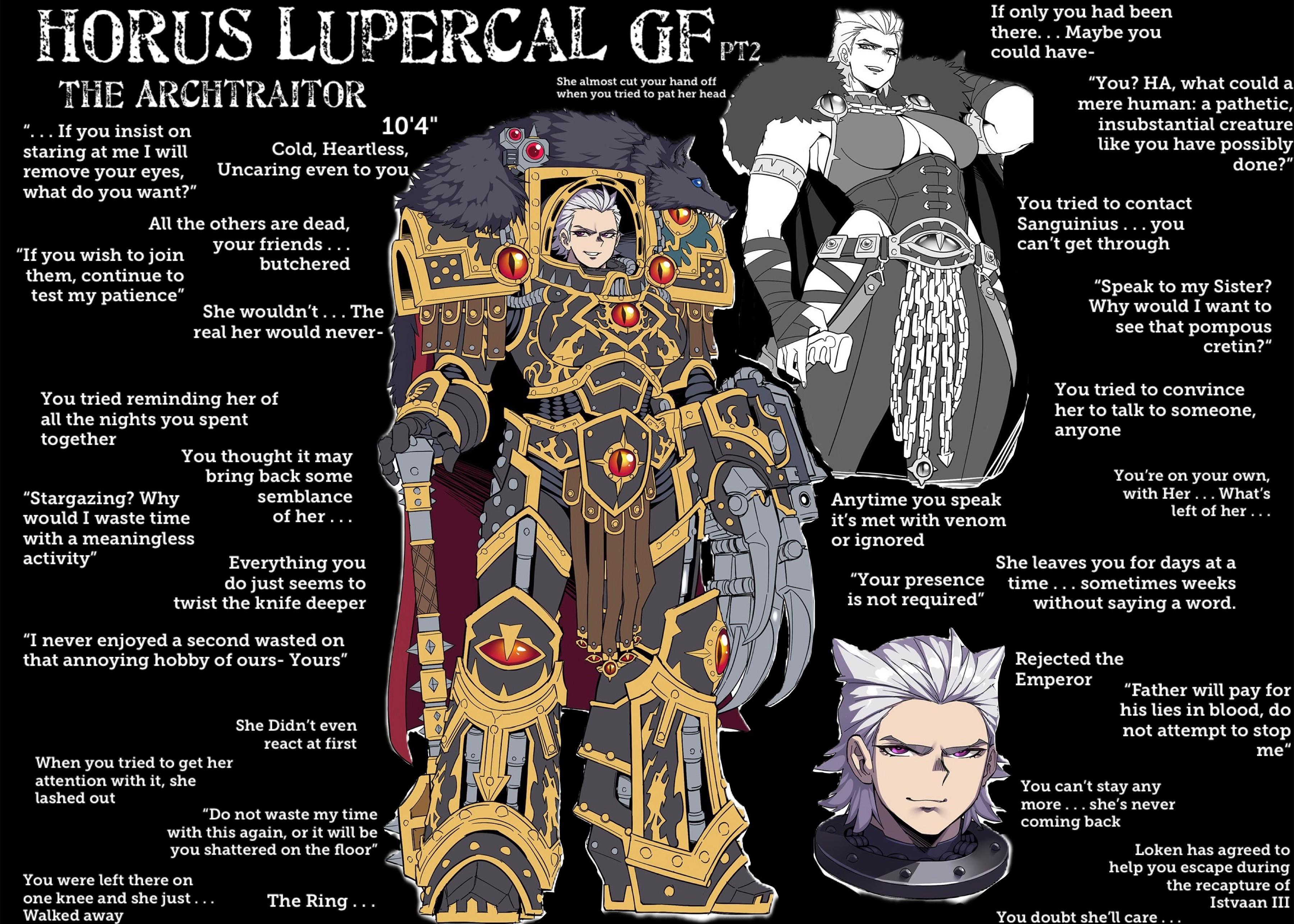 >>729395745lorelet here, how did a human even get there to begin with? surely the emperor only brought powerhouses like custodes and sanguinus