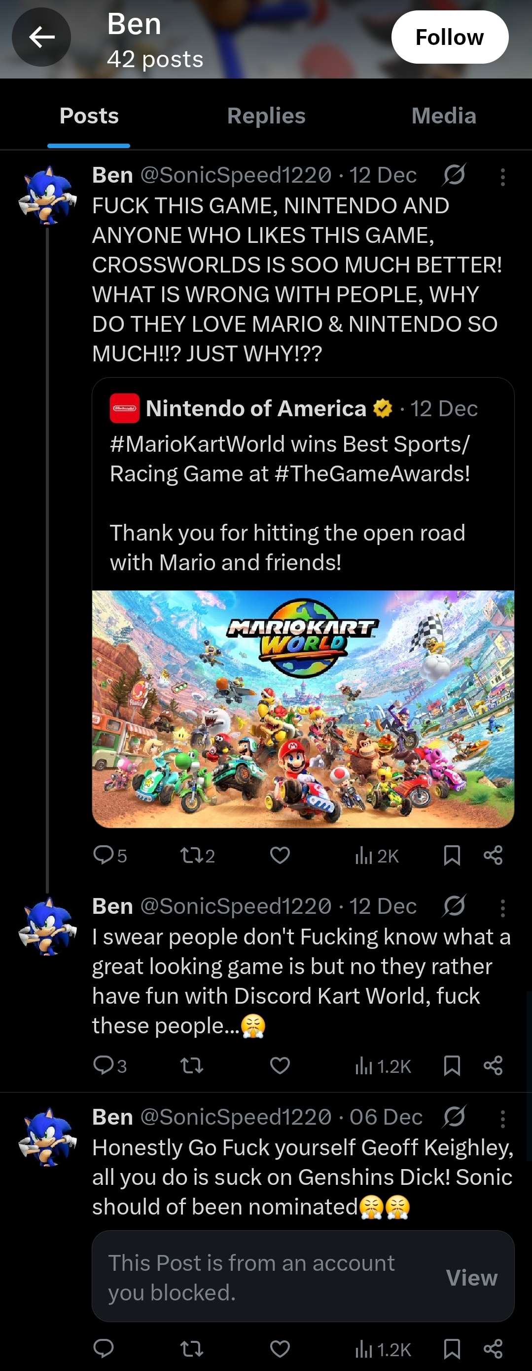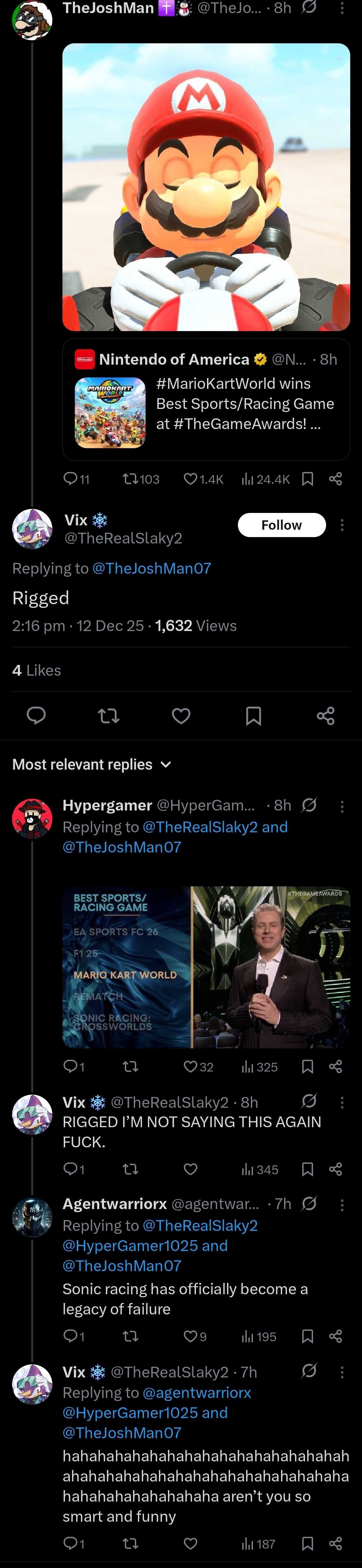 >>729383748Having Mario Kart World in a survey for feedback about Sonic Crossworlds does mean that Mario Kart World occupies SEGA's head rent free, yes