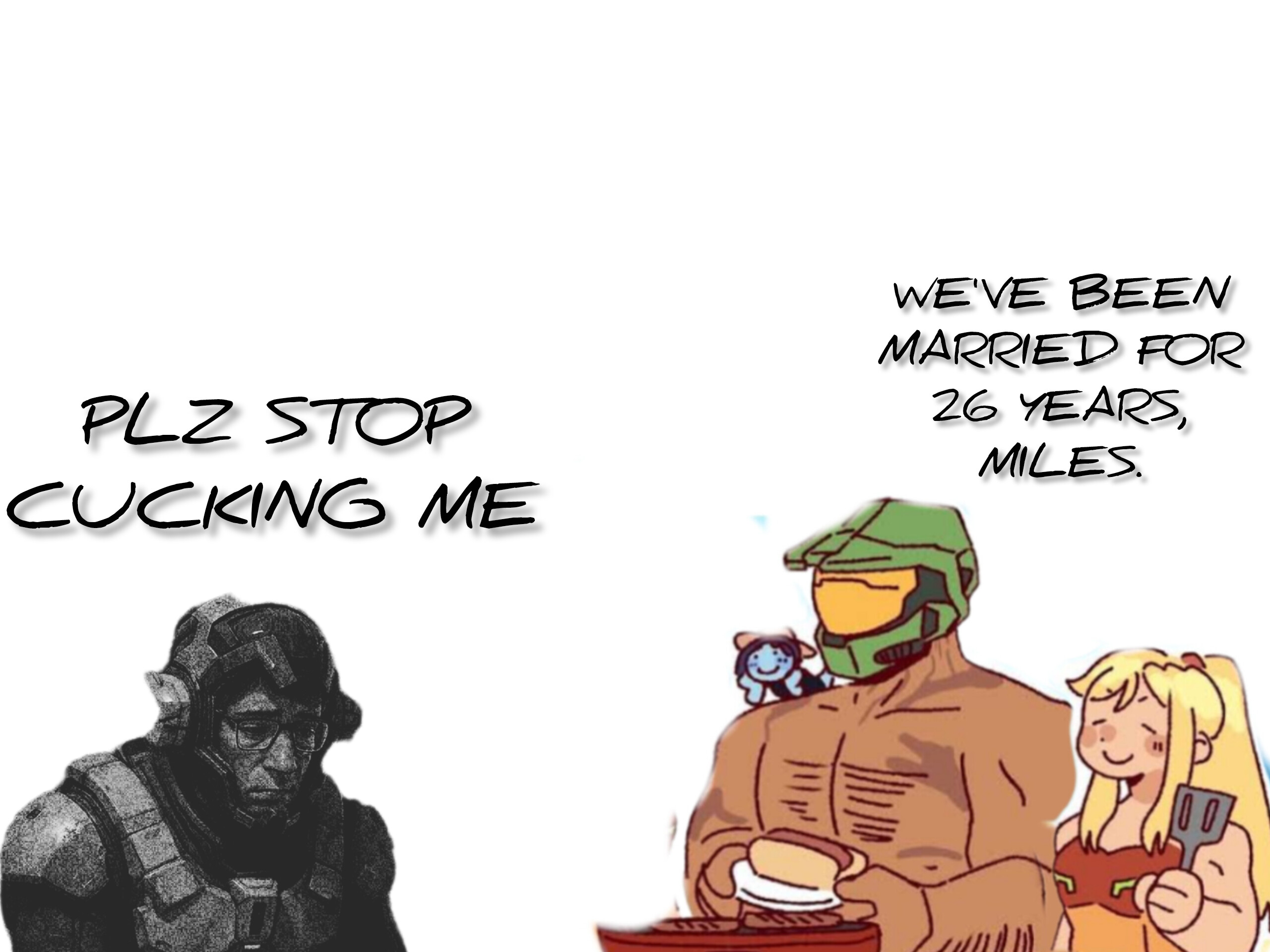>>729416570Why tho?Nothing in common.And Doomguy loses what makes him cool if you give him romance.Fucking love that midget though.