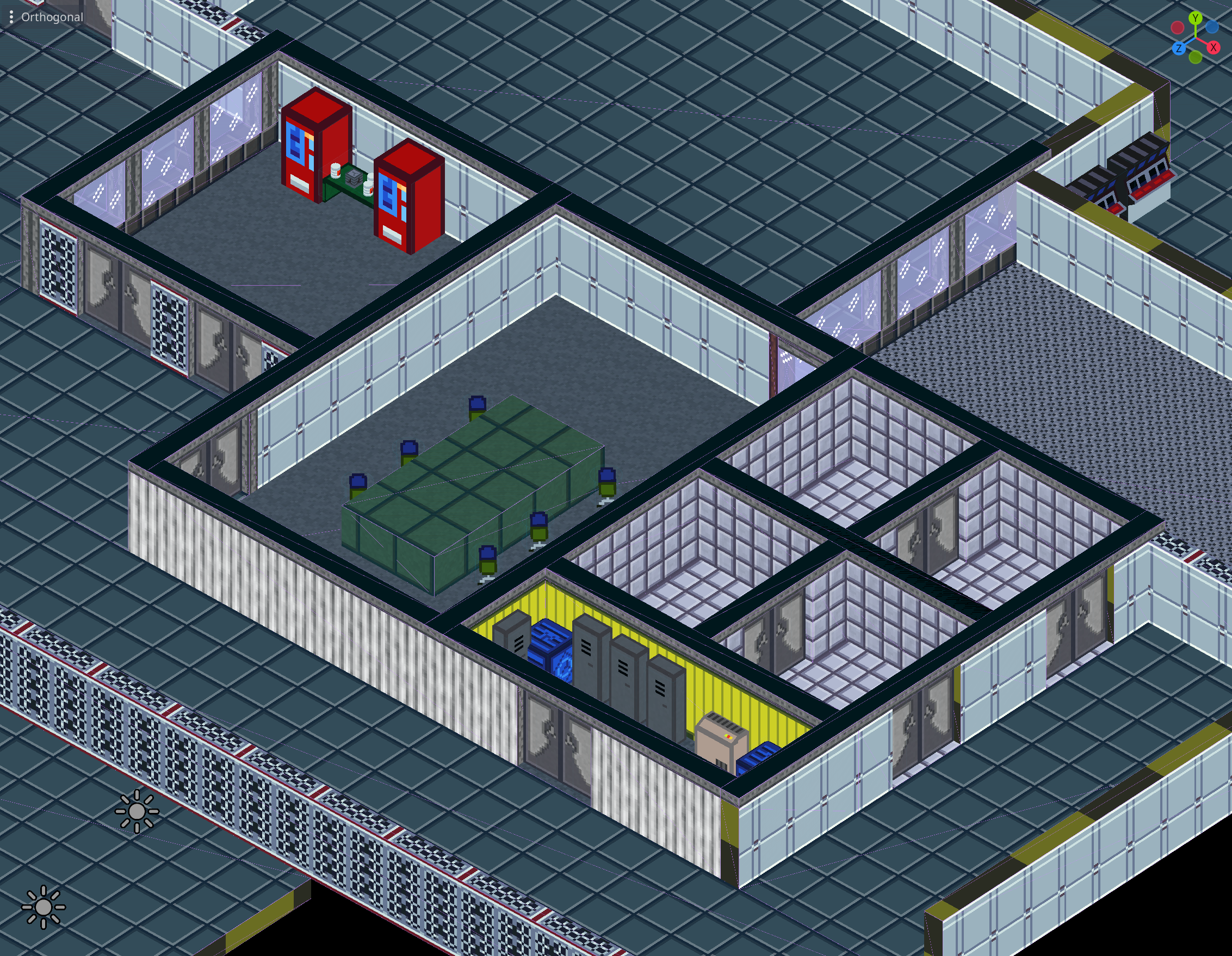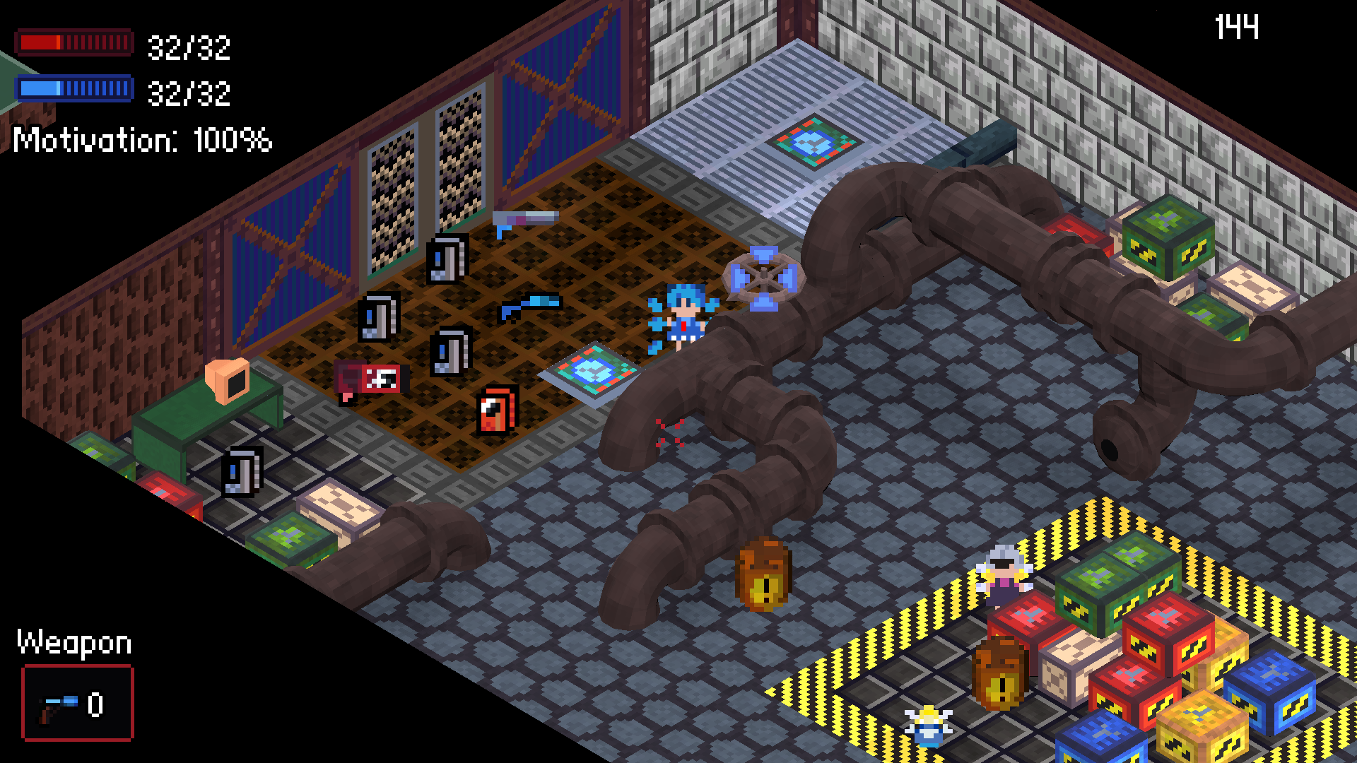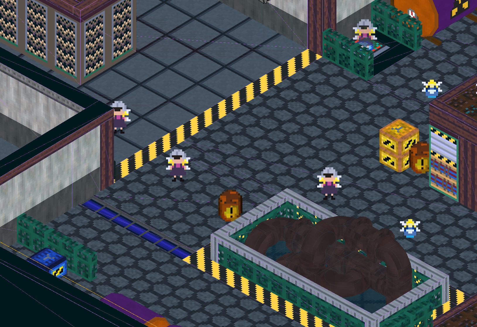 boy is your pixel art style unclear. those jaggies on the yellow warning lines and floor tiles don't look good.