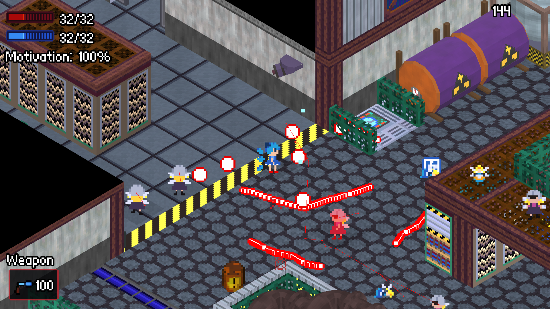 >>729450575Shadows are a bit of an issue currently because I don't know how to make them be performant, past experiments led to massive lag because godot doesn't really have a built-in way to do them properly for 2D sprites.Zooming the camera might be an option, I've been thinking about doing it for a while and I already increased the resolution of the game by a bit to fit UI more comfortably, maybe I'll do it.Oh, yesterday I changed the camera vertical angle from -45 to -36 because I think the isometry was too pronounced, the camera felt too "overhead", I definitely like the new angle moreInteresting idea about the bullets blinking, I haven't added animation support to the bullets yet but it's been in the plansThere's very little I can do about the sprites without hiring an actual artist and I don't want to do that at the moment, I have to build budget firstI've been considering faster bullets, they might work. I'll try to make some enemies that use them and see what happens