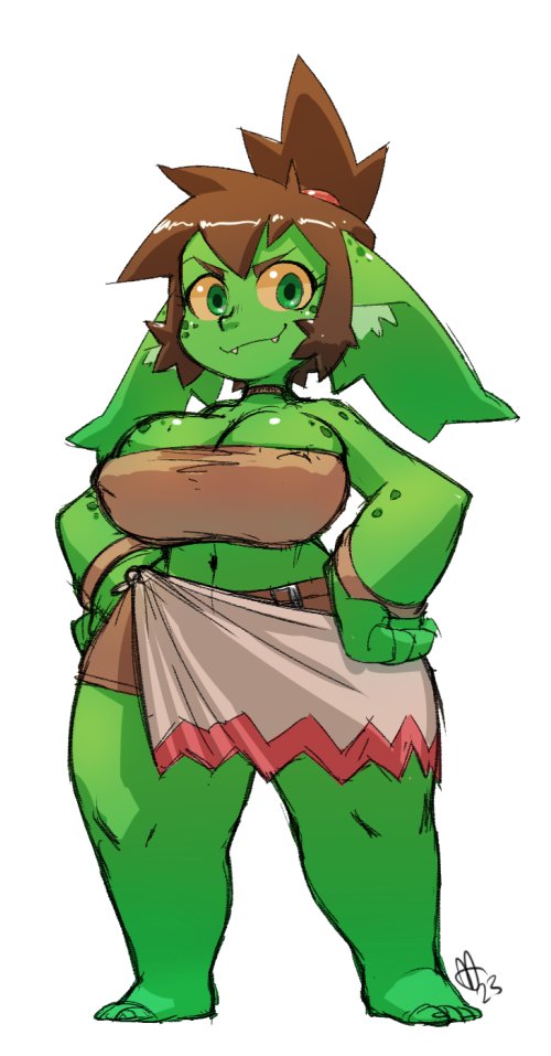 >>729450468Goblin girls should definitely be the smalldoms to big orcs because of their proportionally sizable tits.