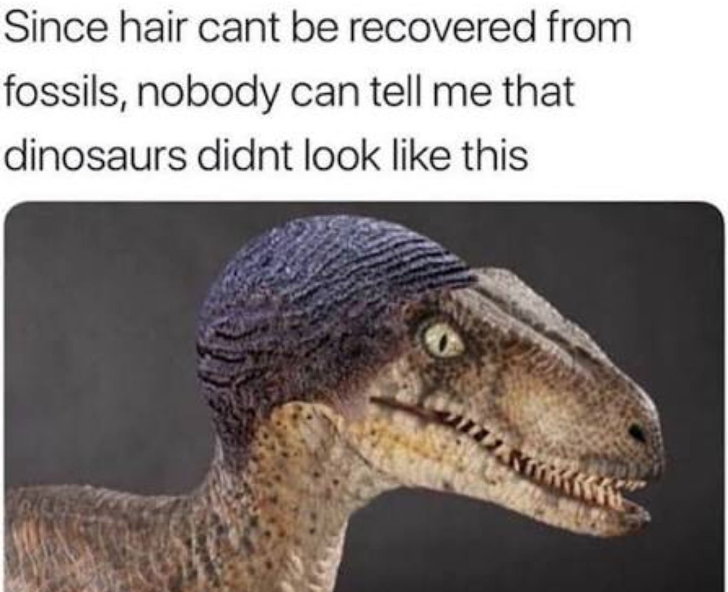 >NOOOOO A DINOSAUR CAN'T BE JUST AN ANIMAL SIMILAR TO ITS MODERN RELATIVES IT HAS TO BE A NON BINARY CREATURE BETWEEN A BIRD AND A LIZARD JUST LIKE MY GENDER!!!