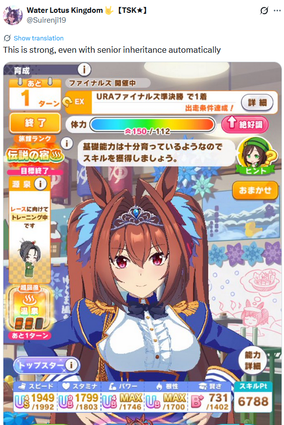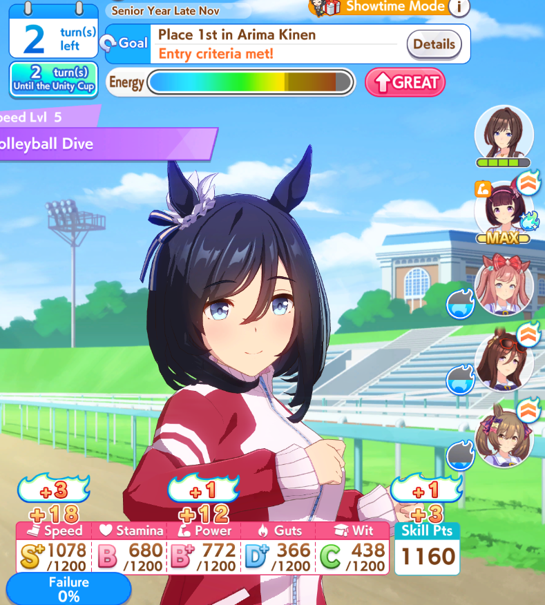 One day I'll learn how to cap speed consistently and prioritize trainings, when that day comes I'll sit on the table with the top trainers of /v/ma. I have everything to be a good trainer but my Umas are still barely above average, though if I haven't learnt to do this in 6 months it might mean that I'll never make it