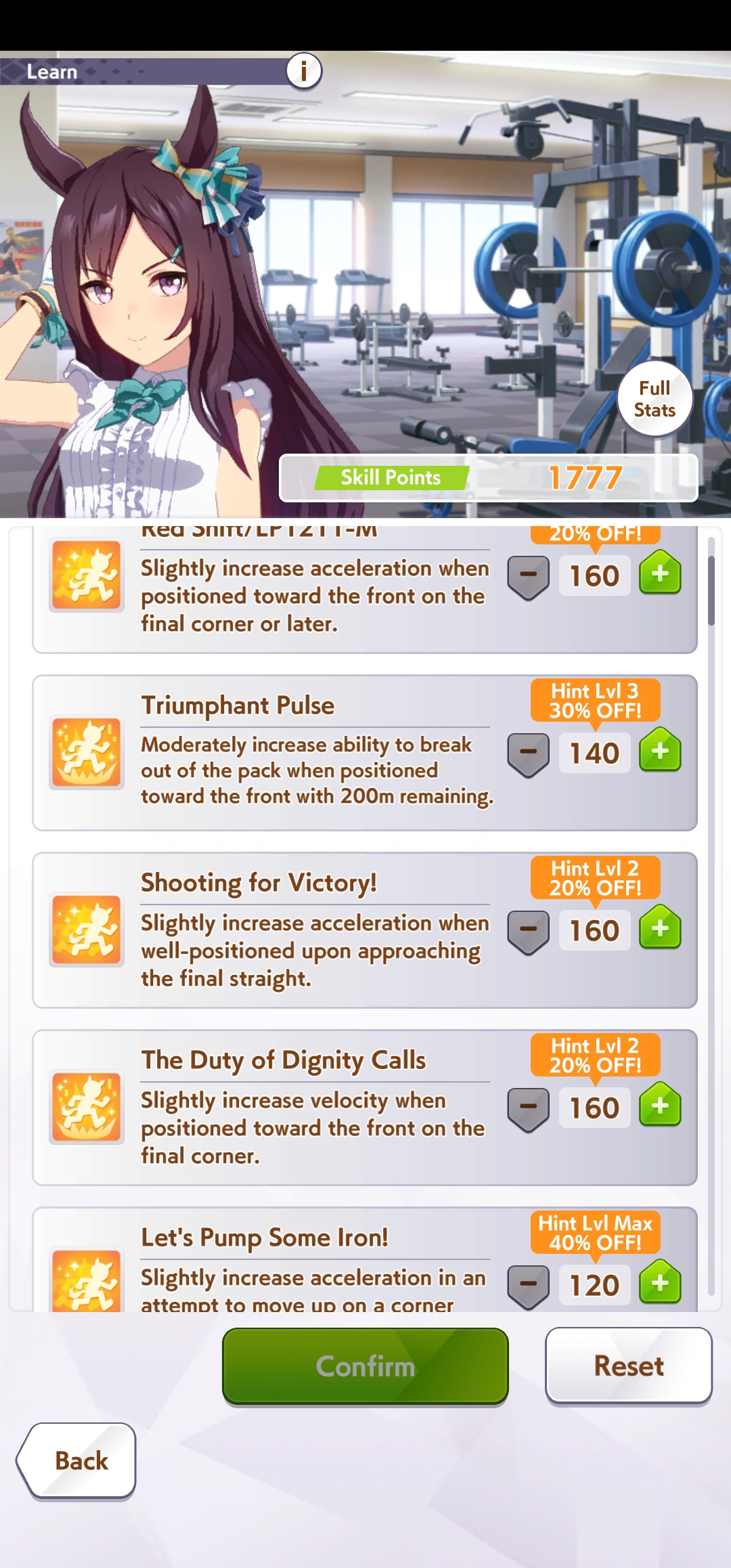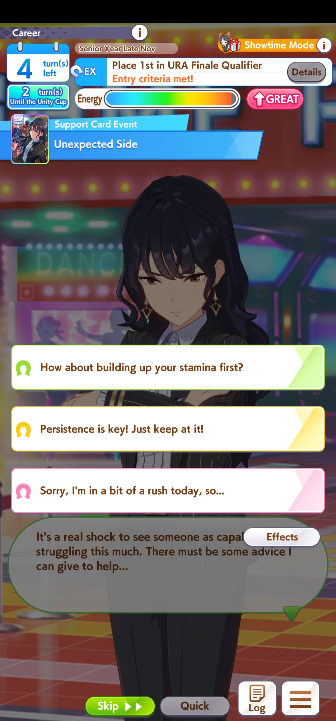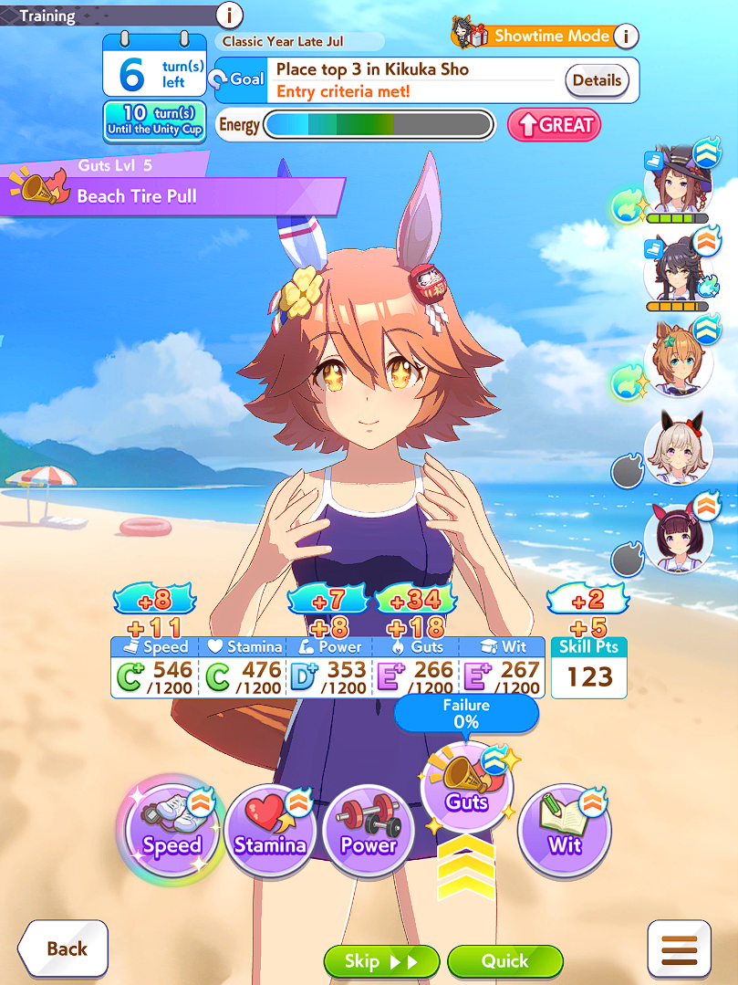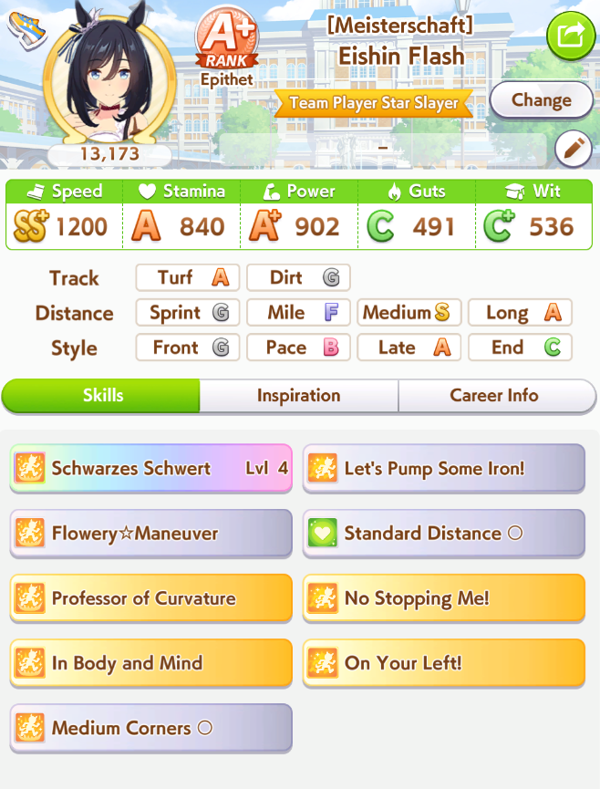>finally have a run with great trainings throughout... when my inheritance events were shit and lack of good skillswhy is the game like this, she's done okay in public rooms but i think not having head on and medium S really hurts her.