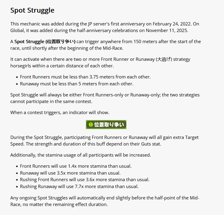 How does the spot struggle mechanic work? What determines who comes out on top?