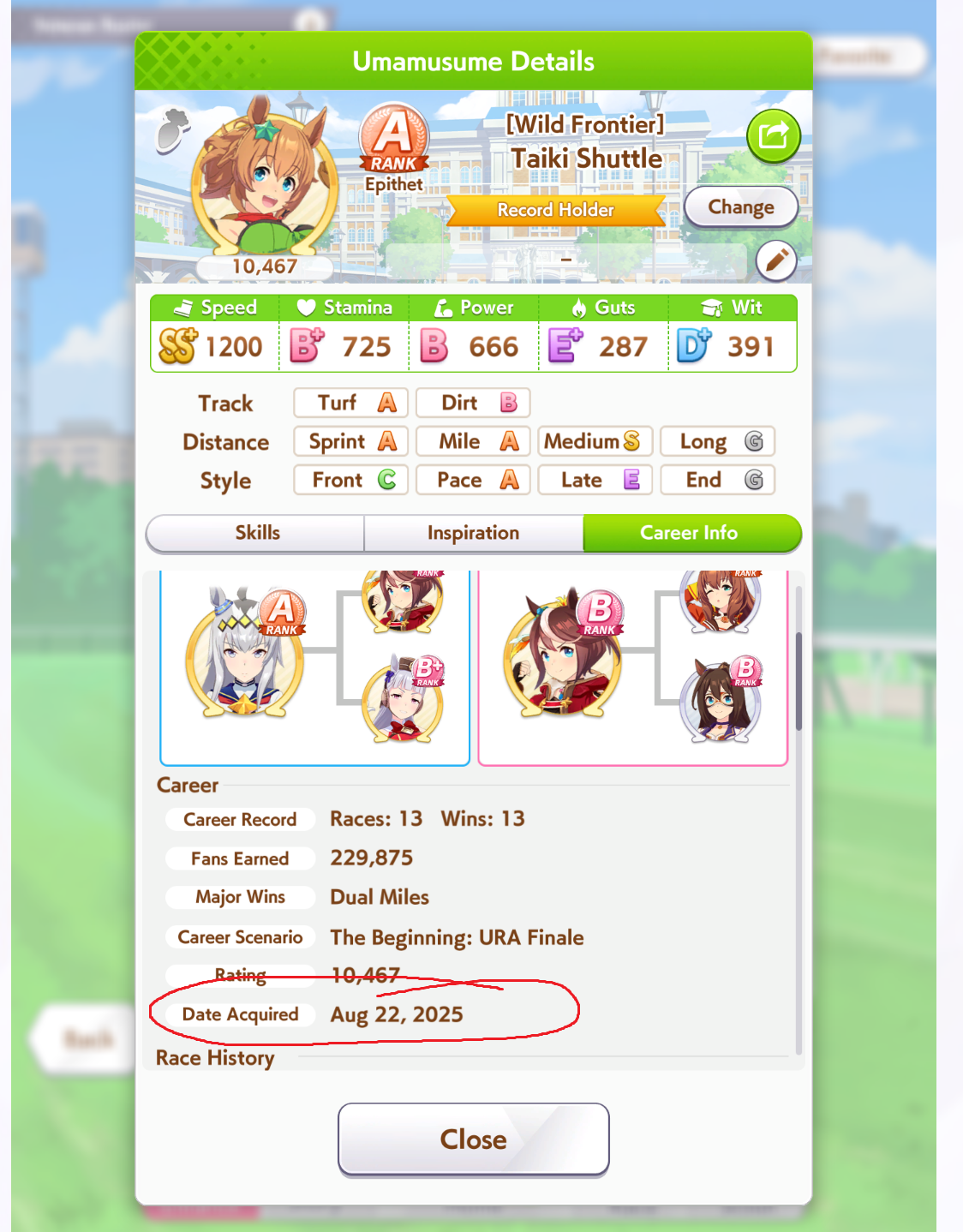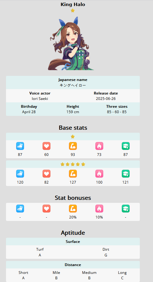 I really love how Brian's debut and first G1 are both miles, which she has a B in, haha. Lose debut > lose an extra turn to maiden > lose Futurity > lose another extra turn to a shitter race is such a great experience.