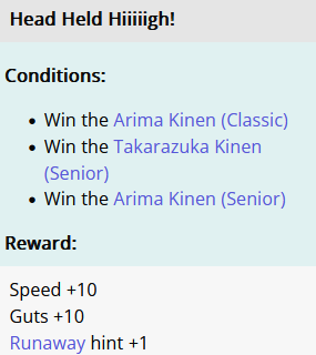>>729583256Have enough stamina, speed, power. Usually about 400 stamina is enough for consistent Arima clear.