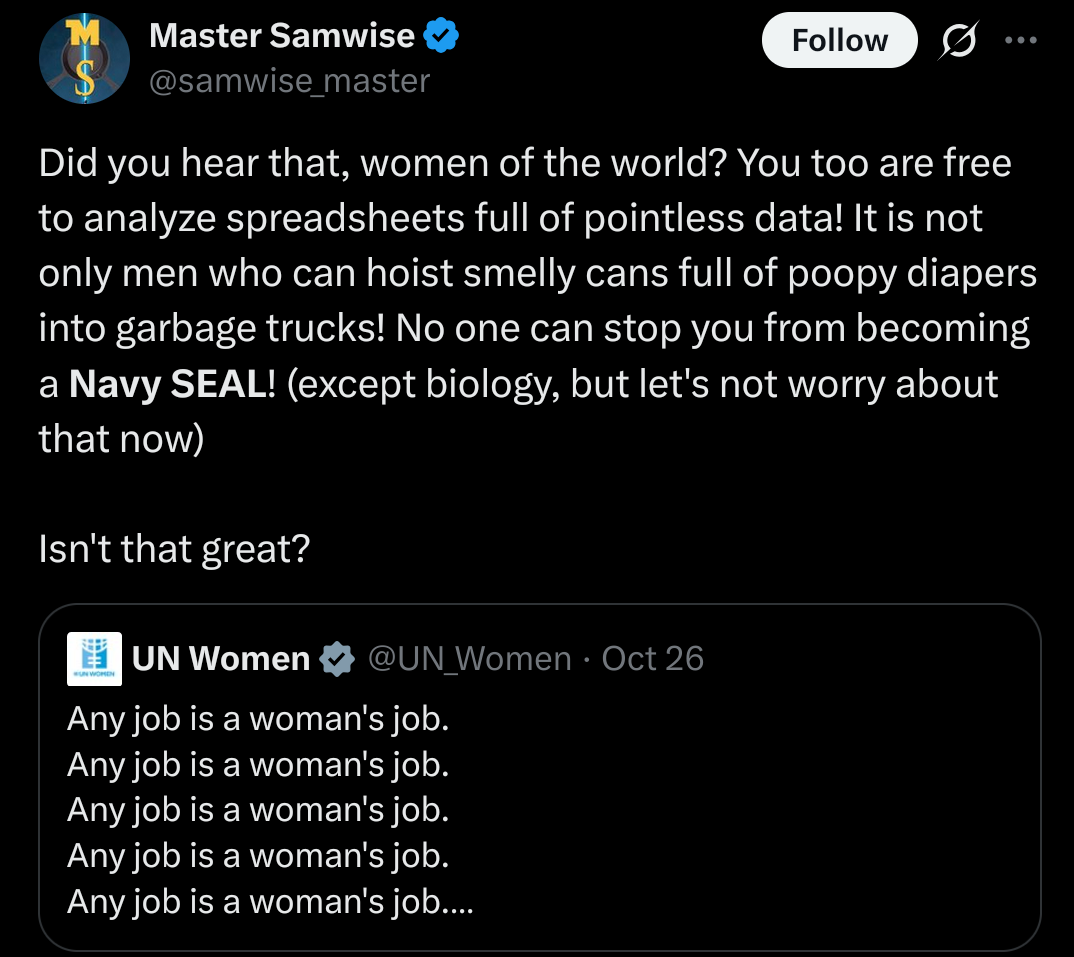 It's actually surprising how traditional this guy's views are in every way but his "masculinity bad" belief