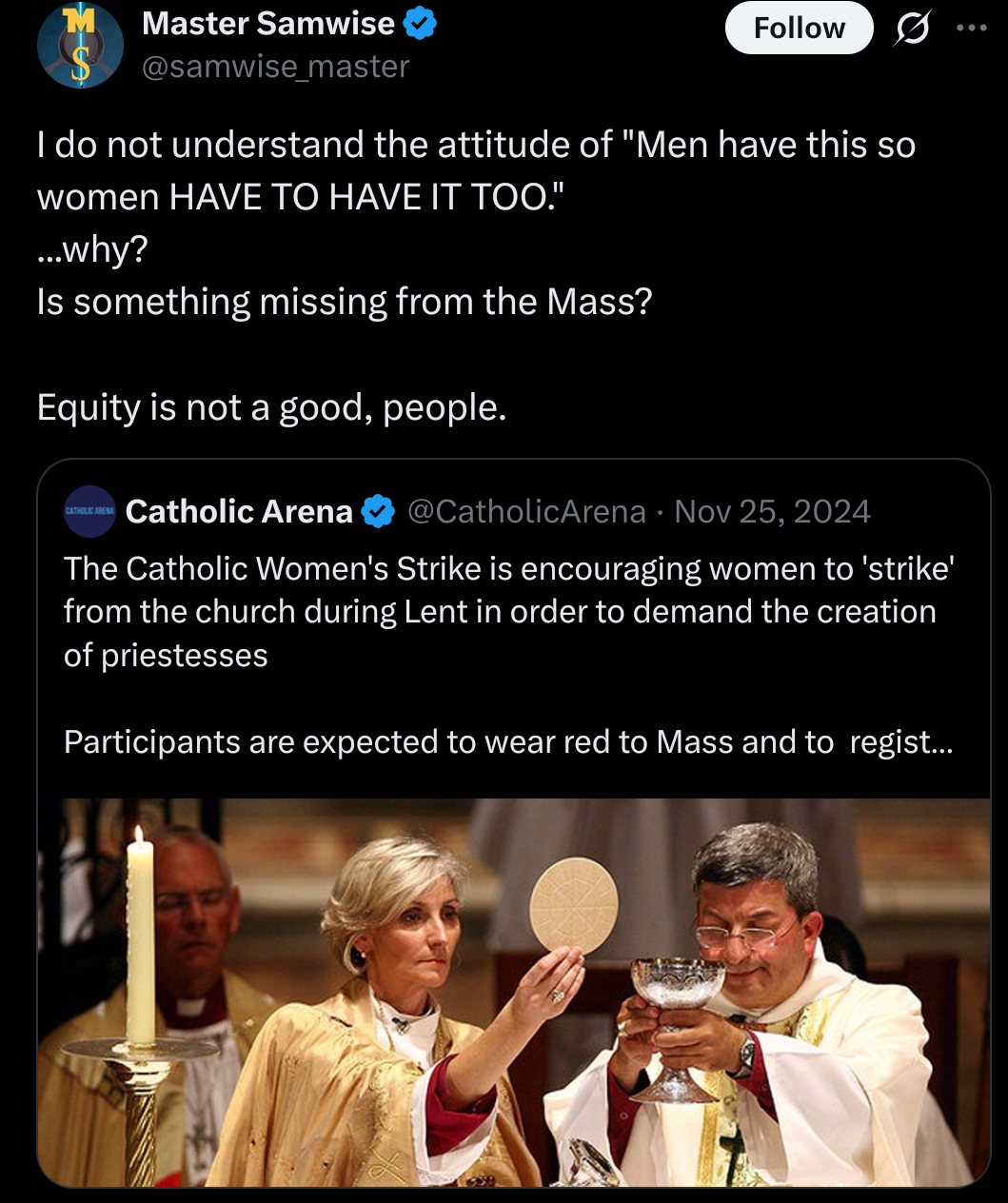 >>729607663Maybe I put it in a confusing way but he's one of those guys that thinks women are perfect angels and men are demons and men need to protect women.