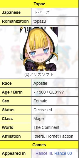 >>729619602How did topaz look in Rance III? didn't play 03 but did play III and don't remember anyone looking the way she does in 03. Can't find cgs of III on the internet.