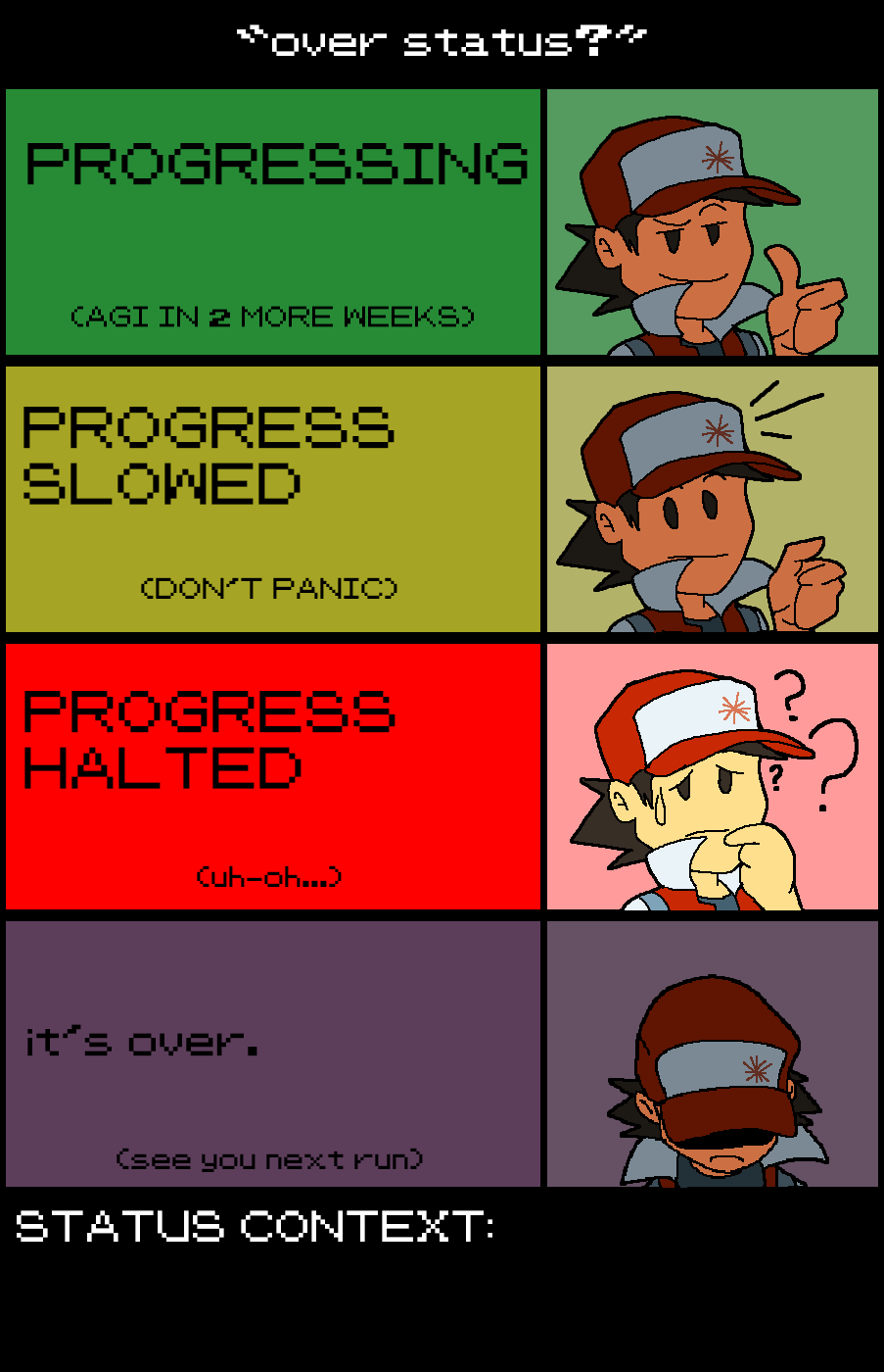 >>729646262It is indeed scrubbed by the internet, including countless guides and playthrough blogging of pokemon red.>it would figure out what it needed to do next right?No because possessing a lot of knowledge =/= being able to make use of it properly. Despite the label, current AI is not "intelligent", but rather a very sophisticated next word predictor.