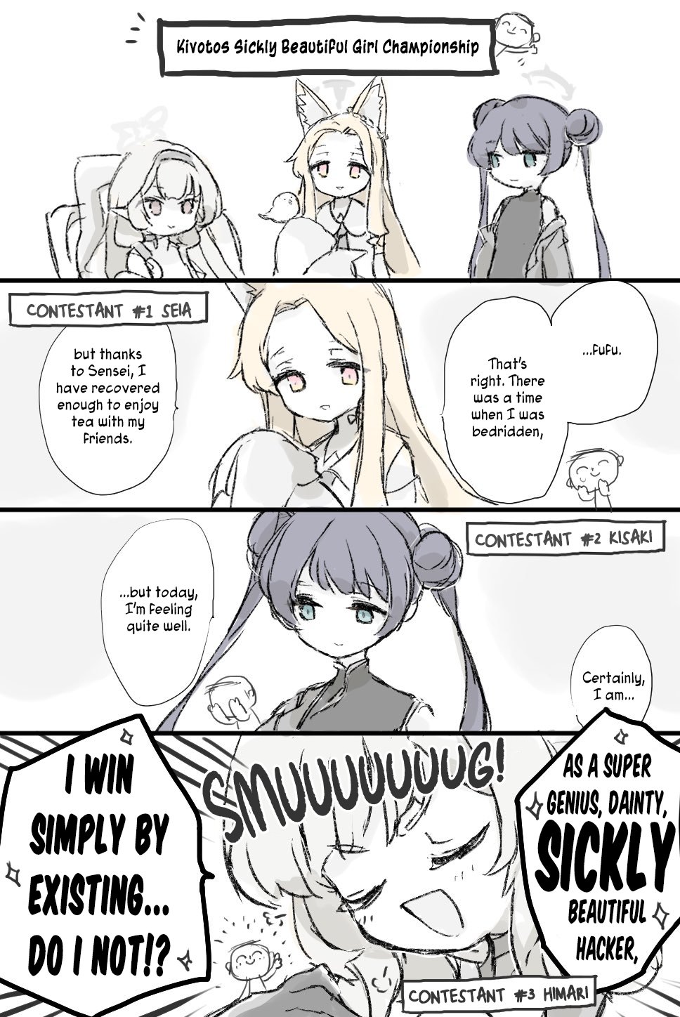 >>729659838Himari would win because she's just faking it for comps.