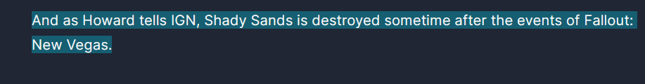 >>729729590I'm guessing the one off line in old trilogy>No, I am your fatherbecause the protagonist's father dropped a nuke on shady sands of new vegas fame