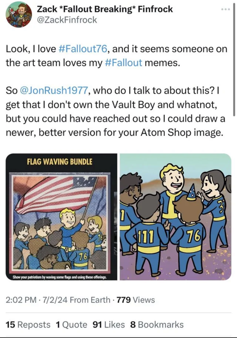 >>729756749>pretending the overwhelming majority hasn’t shit down Todd’s throat for his lack of common sense with the setting and franchise at large