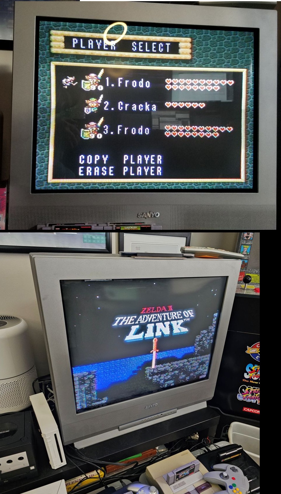>>729745310>>729745525I know it's coming for them, but like I said, I've only noticed it on one of my carts so far. I thought I had the save files on Adventure of Link but it was just the title screen and my NES has been acting up bigly so I gotta mess with the 72 pin connector again. It's still all original, so it's extremely annoying to get going. I had a pic of my LTTP and it's still working fine.