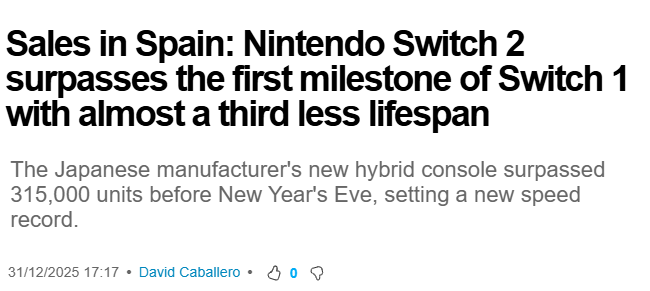 All this dooming over Spain and Nintendo is winning there as well kek>The Switch 2 is the fastest selling Nintendo console in Spain