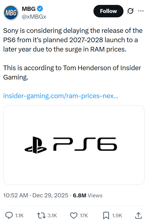 >>729752154So far we had>Switch 2 getting a 30/30 in half a year>The PS6 getting delayed from 2027-2028 due to RAMageddon>The Switch 2 selling well in Spain after all>The PS5 getting hacked