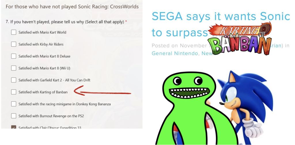 >>729758565>"Sonic Crossworlds is going to replace MKW" >No one bought crossworlds and also lost the best racing award I remember after TGAs, Sonicfags and NDSfags sperged all over social media claiming Nintendo bought the award or whatever. That was a funny time.>t. has both SCW and MKW