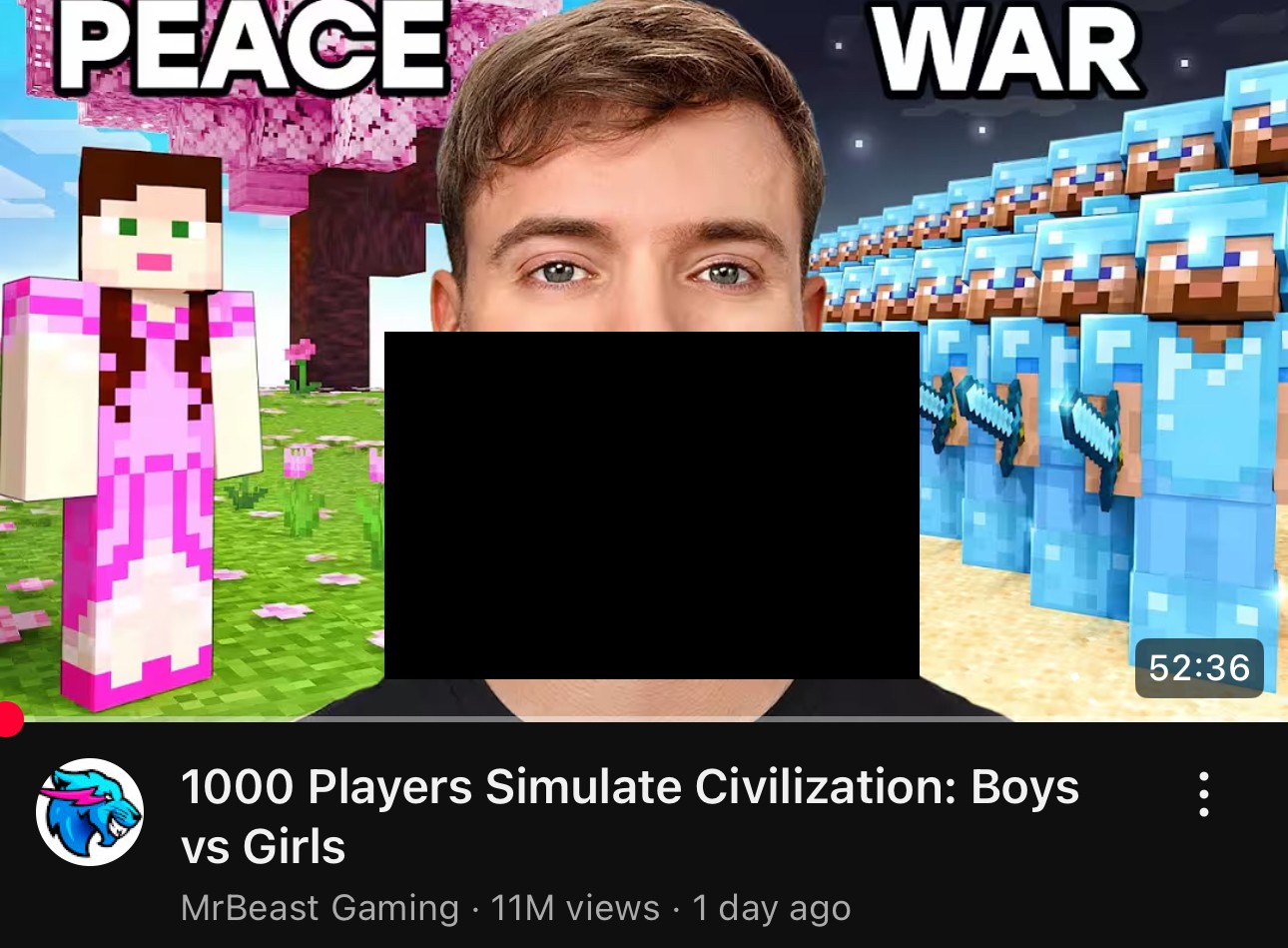 Mr Beast always rigs it for the womens favourI dont even think he has some nefarious agenda, he prolly just has analytics and numbers and knows the average 60iq normalfag npc has a 20% more positive response to seeing girls winning>>729746091I wonder if someone is mentally ill enough to make this into a real addon