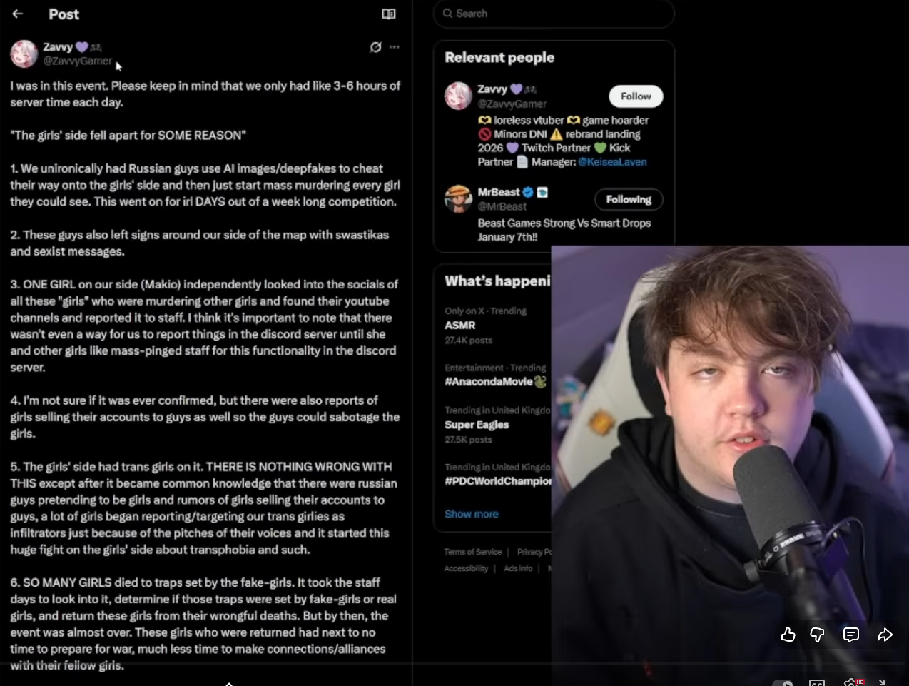 >>729744210>>729743761>Maybe I'll watch some horrible insider retrospective that paints it like documenting war crimes but until thenThe "documentary" is already out. It's raw footage of the event by the POV of everyone. MrBeast purposefully hid most of the girls' side so people don't immediately figure out it was nothing but trannies, whores and voice changers, albeit the russian mod was pretty obvious, not even MrBeast couldn't help but poke fun and comment at the obvious voice changer.It's an entire circus with a bunch of freaks and ESLs.https://www.youtube.com/watch?v=lpDzE2X0YMY&list=PLBNyigz6BEzFcoBbA4wub9j8Q7jjGmYuU&index=3https://www.youtube.com/watch?v=PY3aS2y3DH4