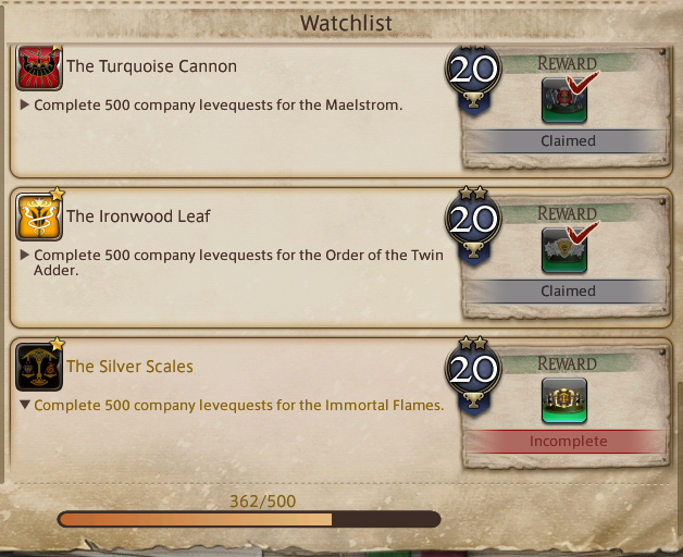 >>729751765I'm close to finishing the GC company achievements myself. Did 100 FL wins on the others too just for the horse mounts (which I can only use the one I'm part of lol).