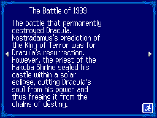 >>729749226Aria of Sorrow is the one where the backstory is that Dracula's Castle was sealed within the European solar eclipse of 1999 by Julius Belmont, military forces, and Japanese shrine maidens invoking the power of Amaterasu/Susanoo.Then Soma Cruz was born as a reincarnation of Dracula during the 2017 solar eclipse in America, and Aria occurs during the Japanese eclipse of 2035.