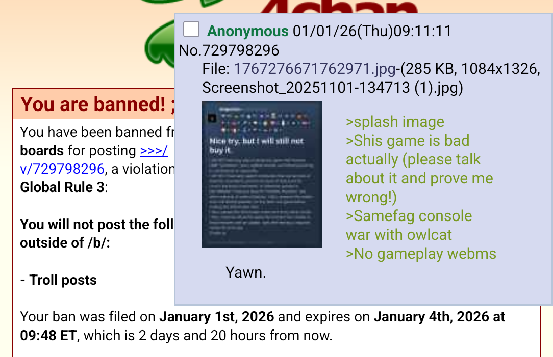 >>729790368>I want to talk about a game but I'm scared that if I make an honest thread people will ignore me so I'll add to the sea of disingenuous bullshit.Fuck off.