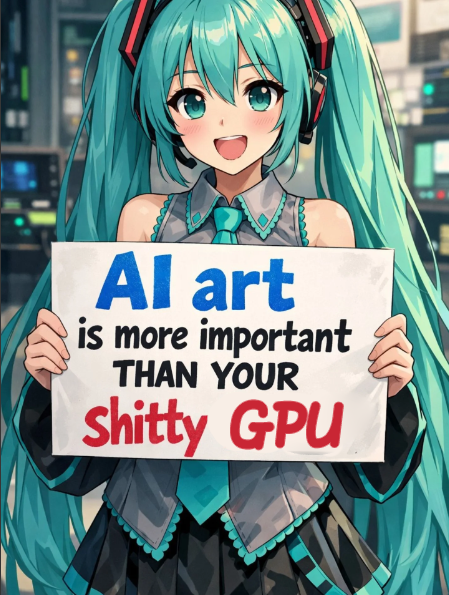 >>729805686>RTX 5090s ALREADY AT 4000 USDOh yeah thanks for reminding me OP, I should buy a 5090, I need it for for uhhhhhuhhhh you know that game that uhhhhhSeriously, what good games even require graphics cards that strong? All I can think of is AAA slop (i.e. not good games). And my huge backlog certainly doesn't need them, that's for sure.