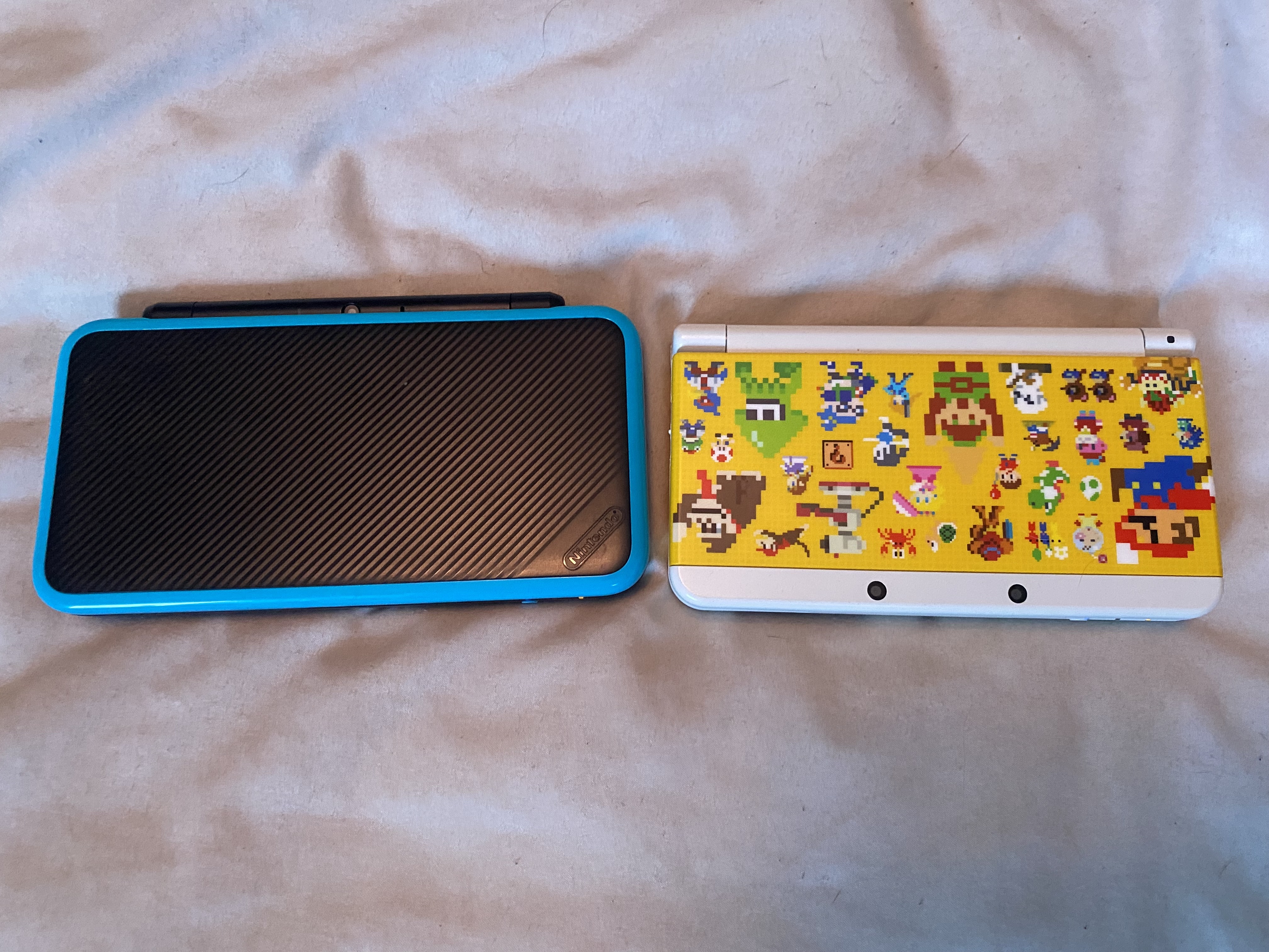 >>729809495A red new XL and a black OG one, wanted a regular new 3DS with a nice plate like 2 years ago but prices were already so damn high that I just gave it up, also, I don't use my 3DSs that often either, I never found them too comfortable to hold compared to, say, a GBA, same happens with the Switch, so I have been thinkin' on getting either a chinkheld or modding my Vita, but I have no idea how because that shit uses that propietary memory card.